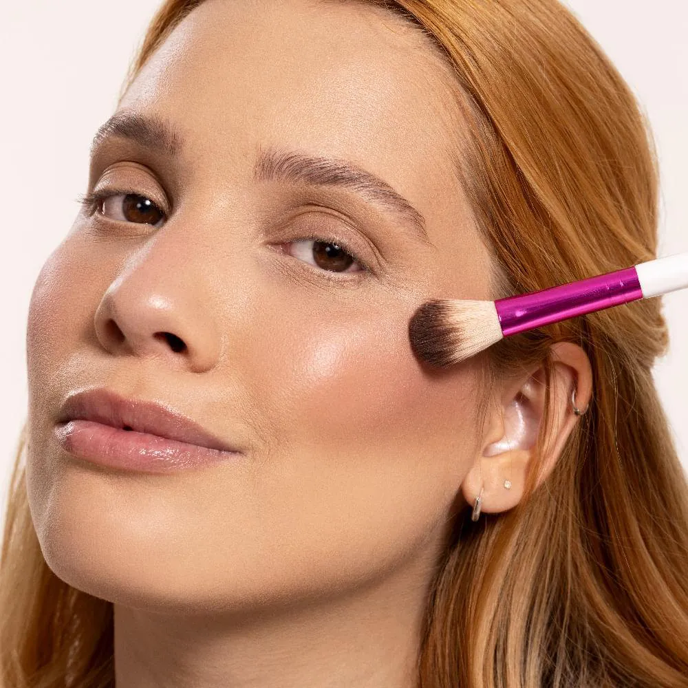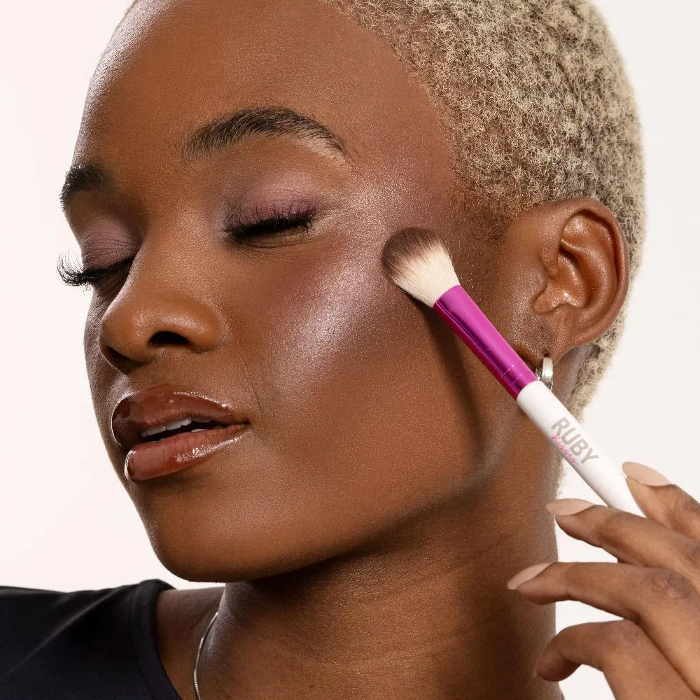 O Pincel para Iluminado da Ruby Kisses é ideal para aplicar iluminadores em pó ou líquidos com leveza e facilidade. Suas cerdas macias, com ponta arredondada, proporcionam uma aplicação delicada e garantem um acabamento difuso, leve e iluminado na medida certa. #DicaRubyKisses: também pode ser usado para selar a maquiagem na região dos olhos, trazendo ainda mais versatilidade para a sua rotina.