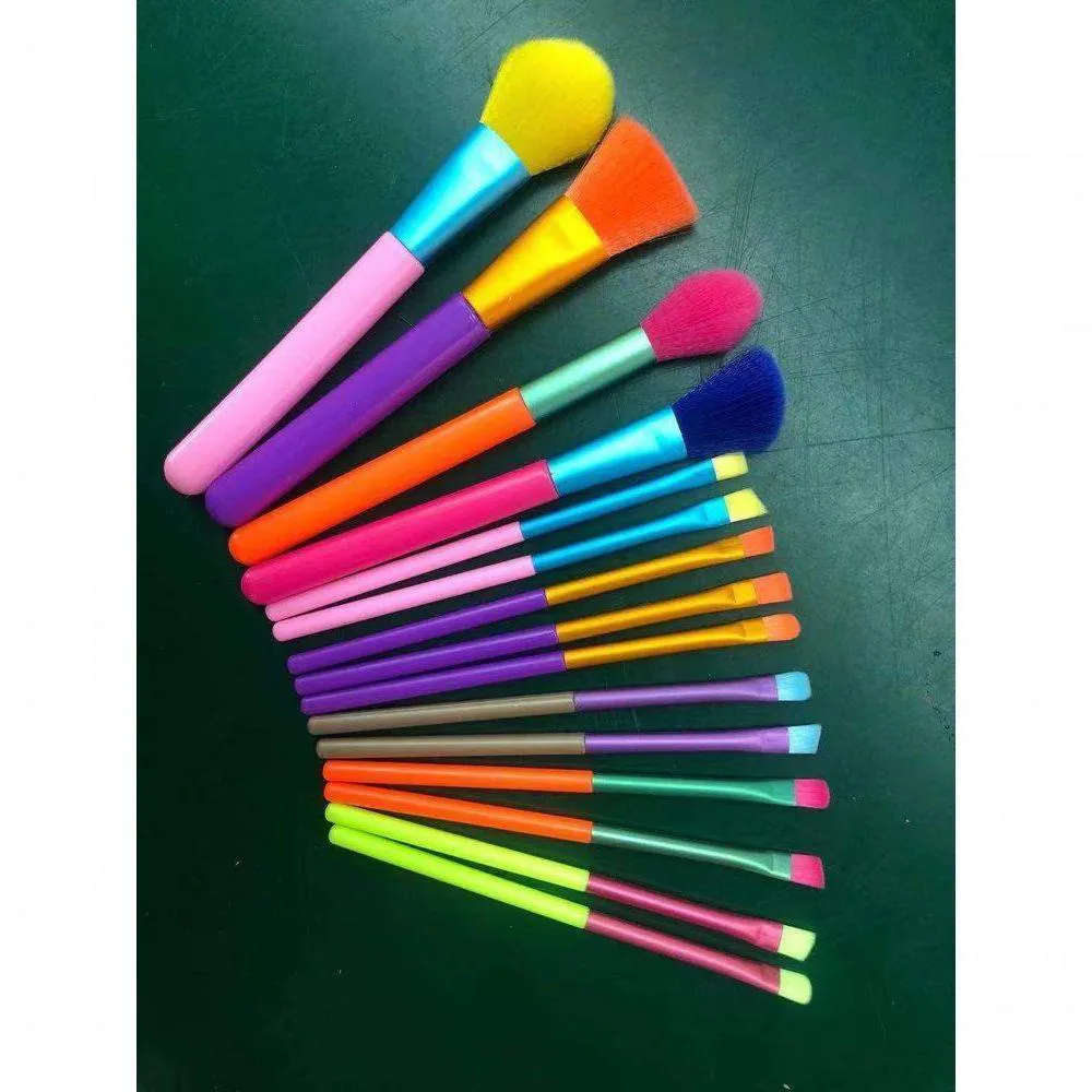 Pincel maquiagem Kit 15 Peças Neon Portatil colorido Makeup Profissional