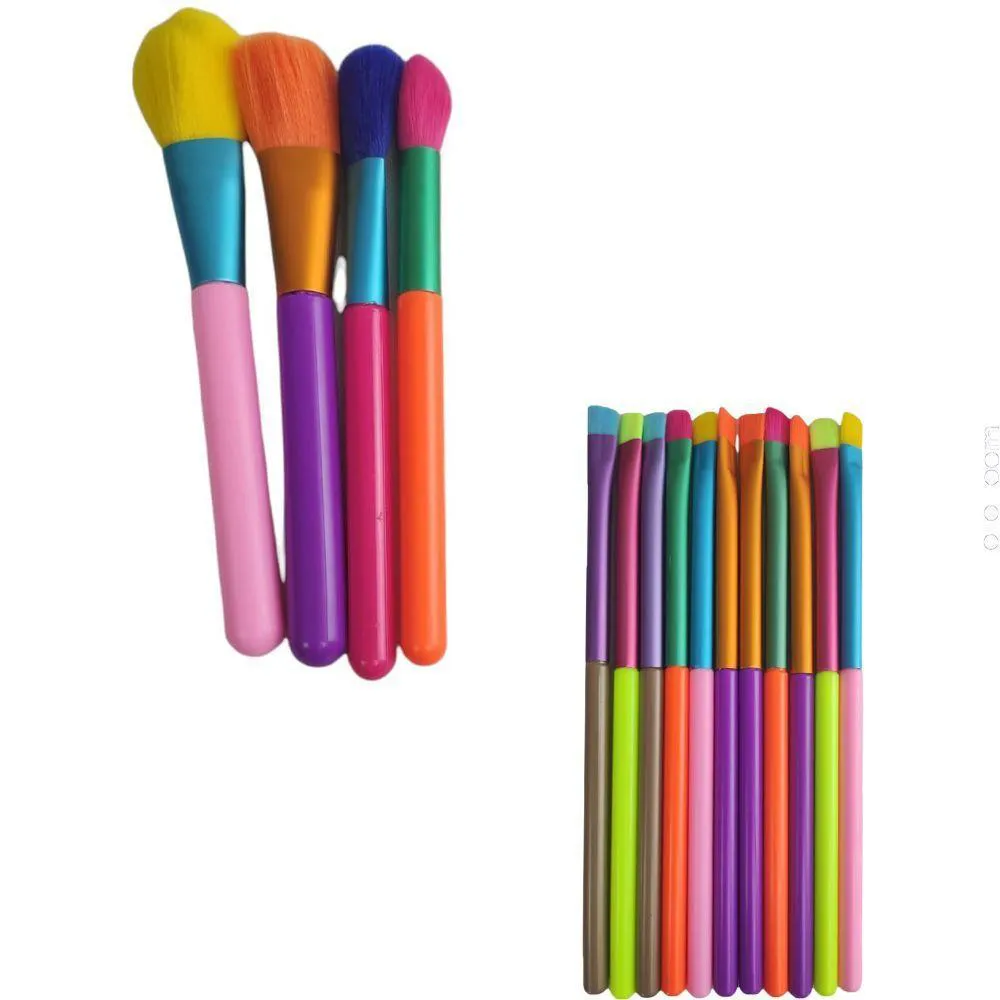 Pincel Maquiagem Kit 15Pçs Neon Portatil Colorido Makeup