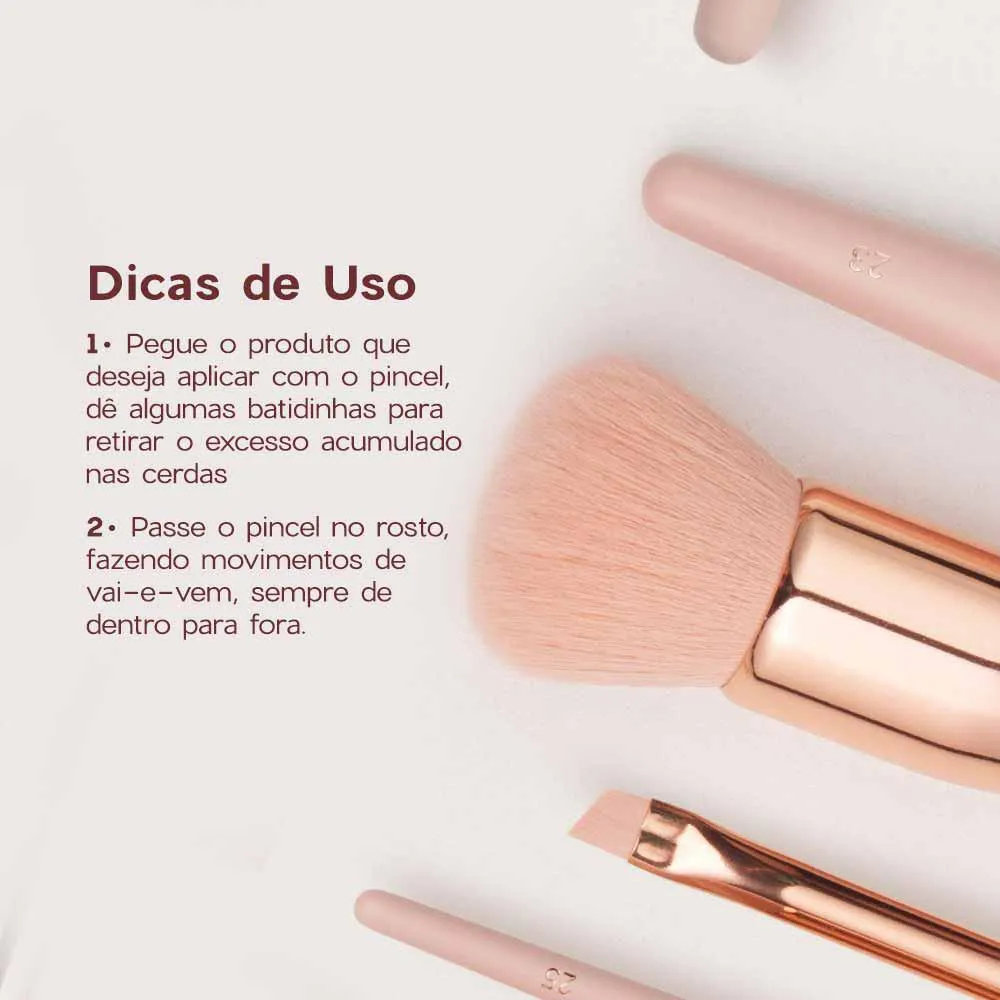 E não podemos deixar de destacar o design desse pincel, que além de lindo, é muito funcional. O seu cabo de madeira é leve e possui um acabamento resistente em um delicado tom de rosa claro super durável. Já a parte metálica vem na cor rosé gold e traz um toque de sofisticação ao produto. Dessa forma, você garante firmeza, ergonomia e beleza sempre à mão para aplicar sua make com precisão.