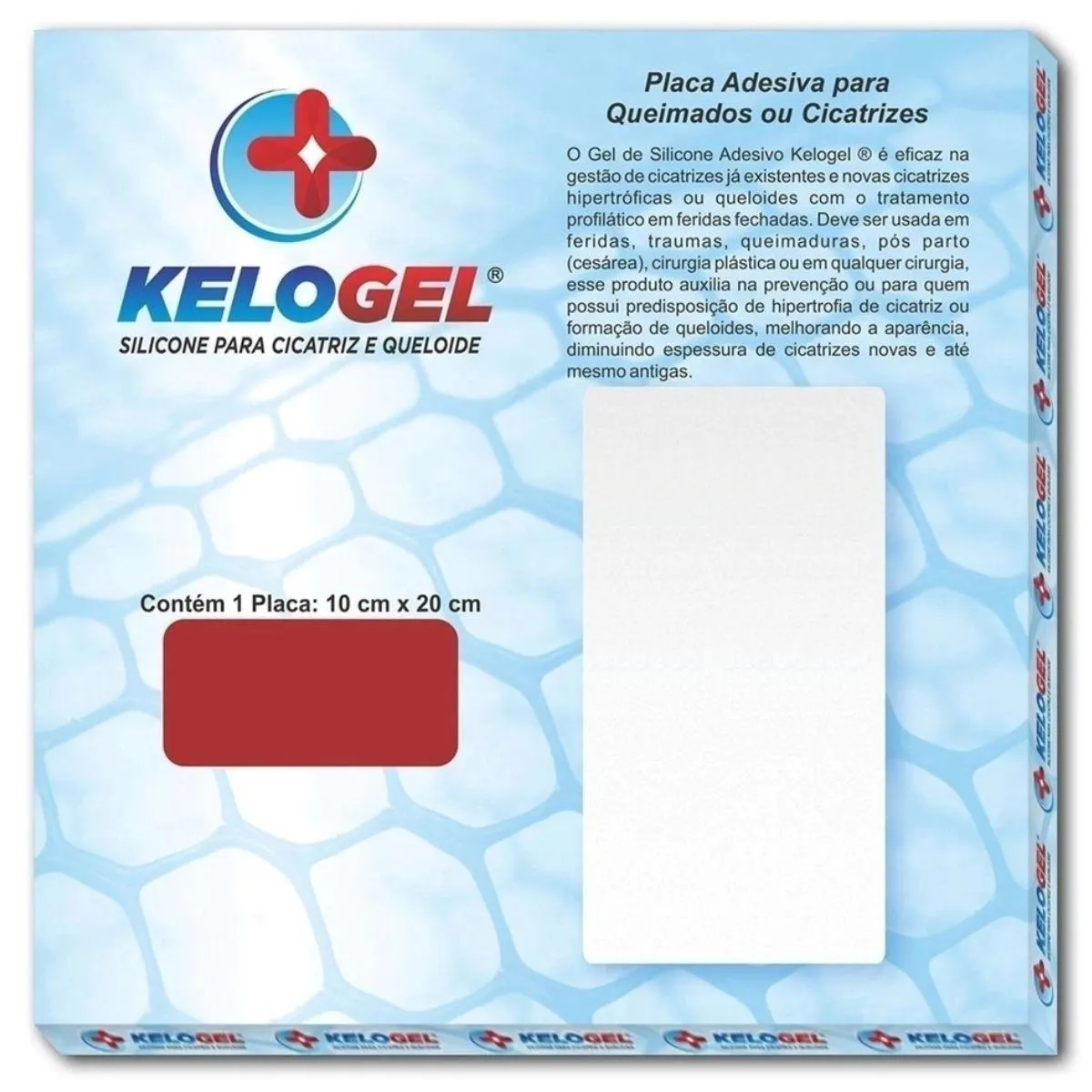 Placa de Silicone Queimados e Cicatriz 10x20cm Kelogel