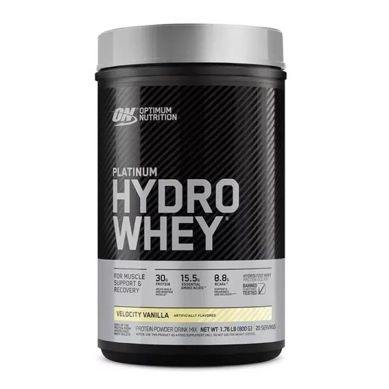 Platinum Hydro Whey (820g) Planinum Hidro Whey – Optimum Nutrition oferece tecnologia de proteína de absorção mais rápida, mais pura e mais avançada do mercado de suplementos. Por hidrolisar a proteína nesta fórmula premium, a Optimum Nutrition criou Hidro whey protein para ter uma ação mais rápida. A hidrólise consiste na quebra das proteínas maiores em pedaços menores que são capazes de entrar em seu sistema orgânico rapidamente, permitindo que os seus músculos também comecem a se reconstruir rapidamente. Para uma melhor eficácia, a Optimum Nutrition reforçou esta fórmula revolucionária com peptídeos ACTITOR™; enzimas digestivas e aminoácidos de cadeia ramificada micronizada (BCAAs). Além de ser rápido, Platinum Hydro Whey é também ultra-puro. Isso porque ele é feito inteiramente com whey protein isolada. Portanto, não há excesso de gordura, colesterol ou lactose para retardar o seu progresso de absorção. 100% das proteínas do Platinum HydroWhey são hidrolisadas em diferentes graus. A hidrólise é um processo através do qual as proteínas intactas são estrategicamente divididas em fragmentos menores, chamados peptídeos, para uma disponibilidade mais rápida e de mais fácil utilização pelo seu corpo. A combinação exclusiva de proteínas leve, moderada e proteínas ultra-hidrolisada de Optimum Nutrition fornece di-peptídeos, tri-peptídeos e oligo-peptídeos, enquanto que a retenção seleciona micro-frações naturalmente encontradas no whey. Se isso é muito técnico, tudo o que você realmente precisa entender é que Platinum Hydrowhey é um produto perfeito para o consumo pela manhã, antes dos treinos e logo após os treinos, quando os seus esforçados músculos se beneficiam mais de uma proteína de ação rápida. Benefícios: - Feito com Whey Protein Isolada Hidrolisada Avançada para uma absorção muito mais rápida e eficiente:- 30 gramas de Proteína Ultra-Pura por Dose;- Cerca de 9 Gramas de Leucina, Isoleucina e Valina (BCAAs), adicionados;- Inclui Peptídeos de Patente Pendente ACTITOR™;- Totalmente livre de Lactose ou Colesterol;- Contém Enzimas Digestivas para uma Melhor Utilização da Proteína;- Instantâneo; pode ser Misturado Facilmente com uma Colher;- Alimente e recupere seus músculos rapidamente.