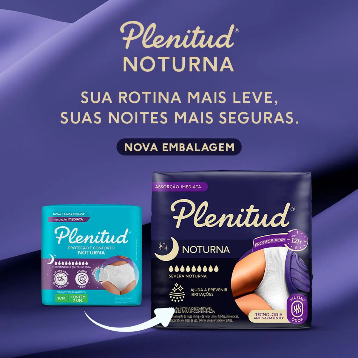 A Plenitud Noturna é uma roupa íntima descartável projetada para quem sofre com incontinência severa noturna. Sua tecnologia antivazamento garante rápida absorção sem abrir mão da suavidade, garantindo uma noite tranquila.