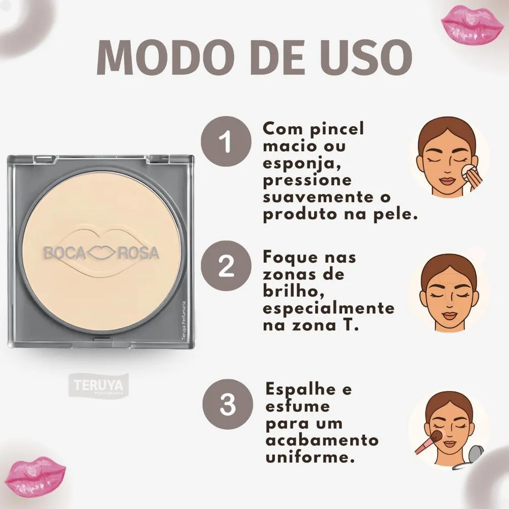 Pó Compacto Boca Rosa Translúcido Cuscuz suavemente nas áreas do