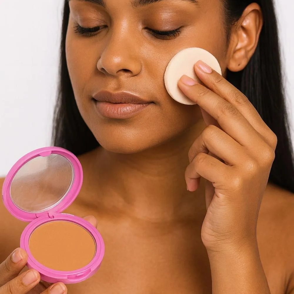 RUBY ROSE, este pó facial uniformiza o tom da pele, corrige pequenas imperfeições e oferece