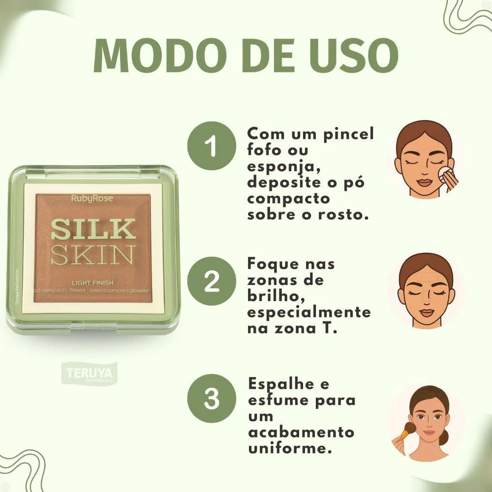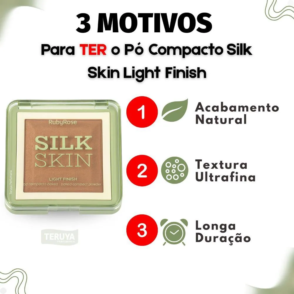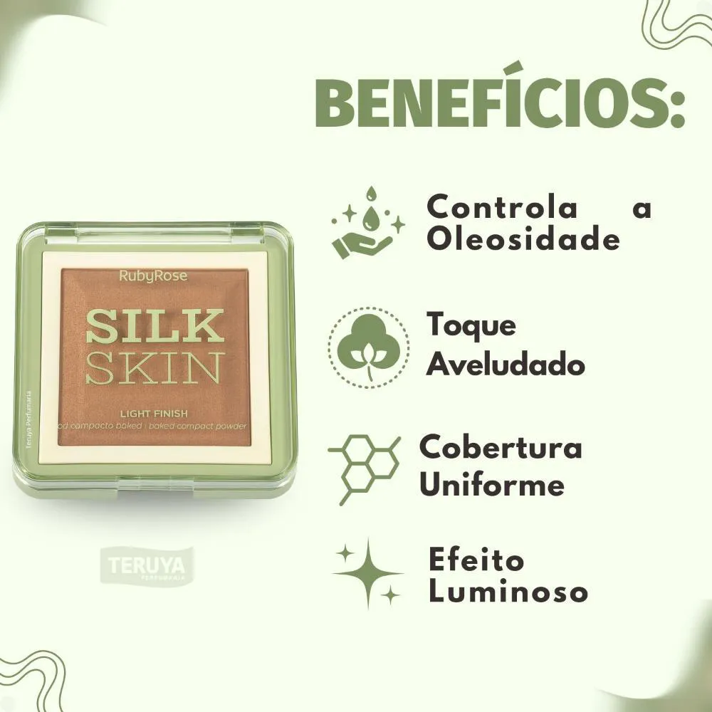 Pó Compacto Ruby Rose Silk Skin Light Finish PC50 HB-M403-5 é o aliado perfeito para uma