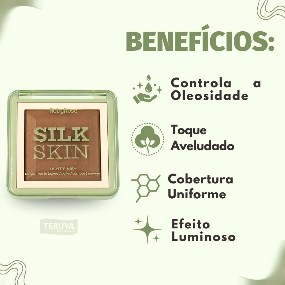 Pó Compacto Ruby Rose Silk Skin Light Finish PC70 HB-M403-7 é o aliado perfeito para uma
