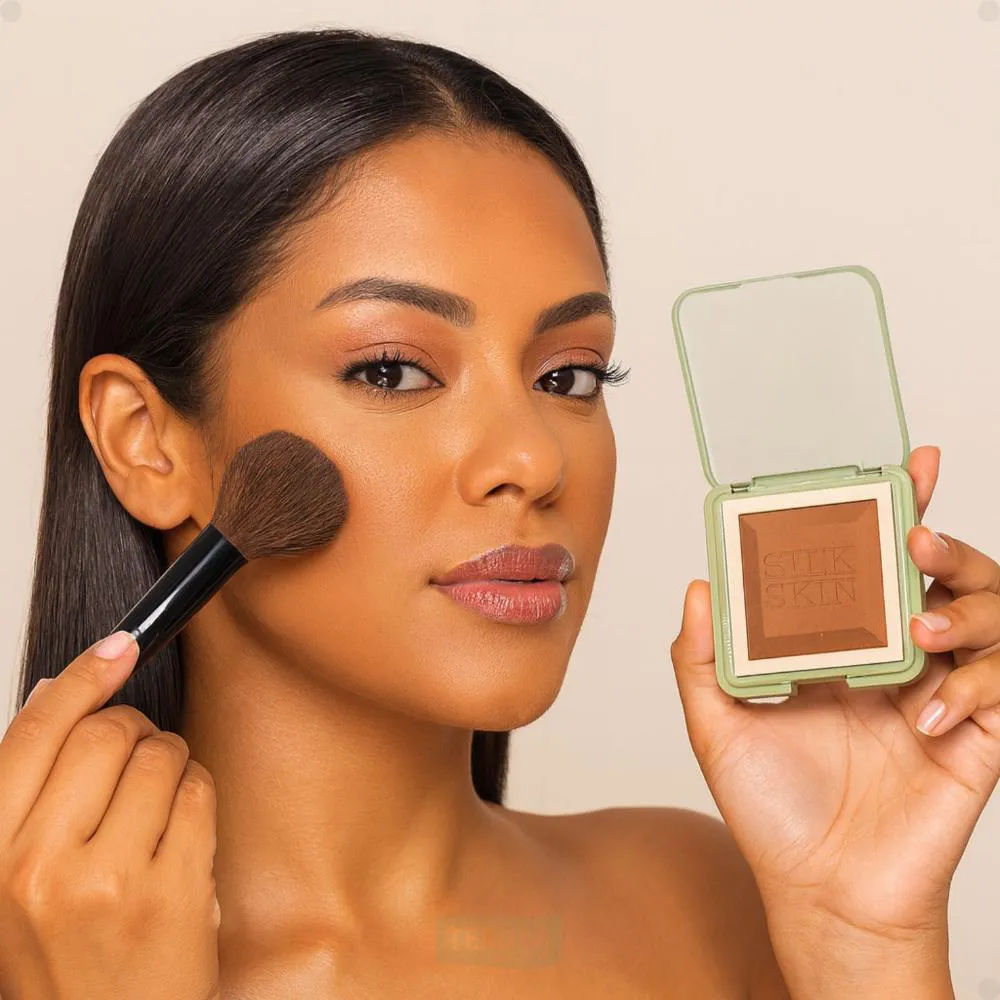 rosto, especialmente na zona T (testa, nariz e queixo), para selar a maquiagem e controlar o brilho.Espalhe suavemente para obter uma cobertura uniforme e um acabamento natural.