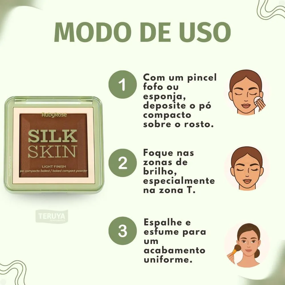 Pó Compacto Ruby Rose Silk Skin Light Finish PC90 HB-M403-9 é o aliado perfeito para uma