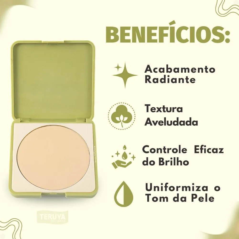 rosto com um pincel ou esponja para selar a maquiagem e uniformizar a pele.Reaplique ao longo do dia conforme necessário para controlar a oleosidade e manter o acabamento impecável.