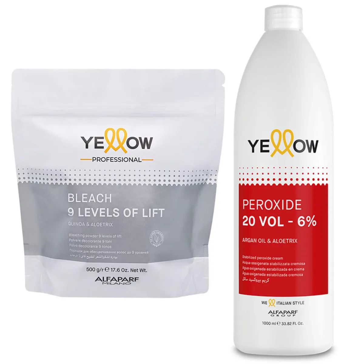 Pó Descolorante 9 Tons Bleach Yellow 500G + Ox 20V 1 Litro