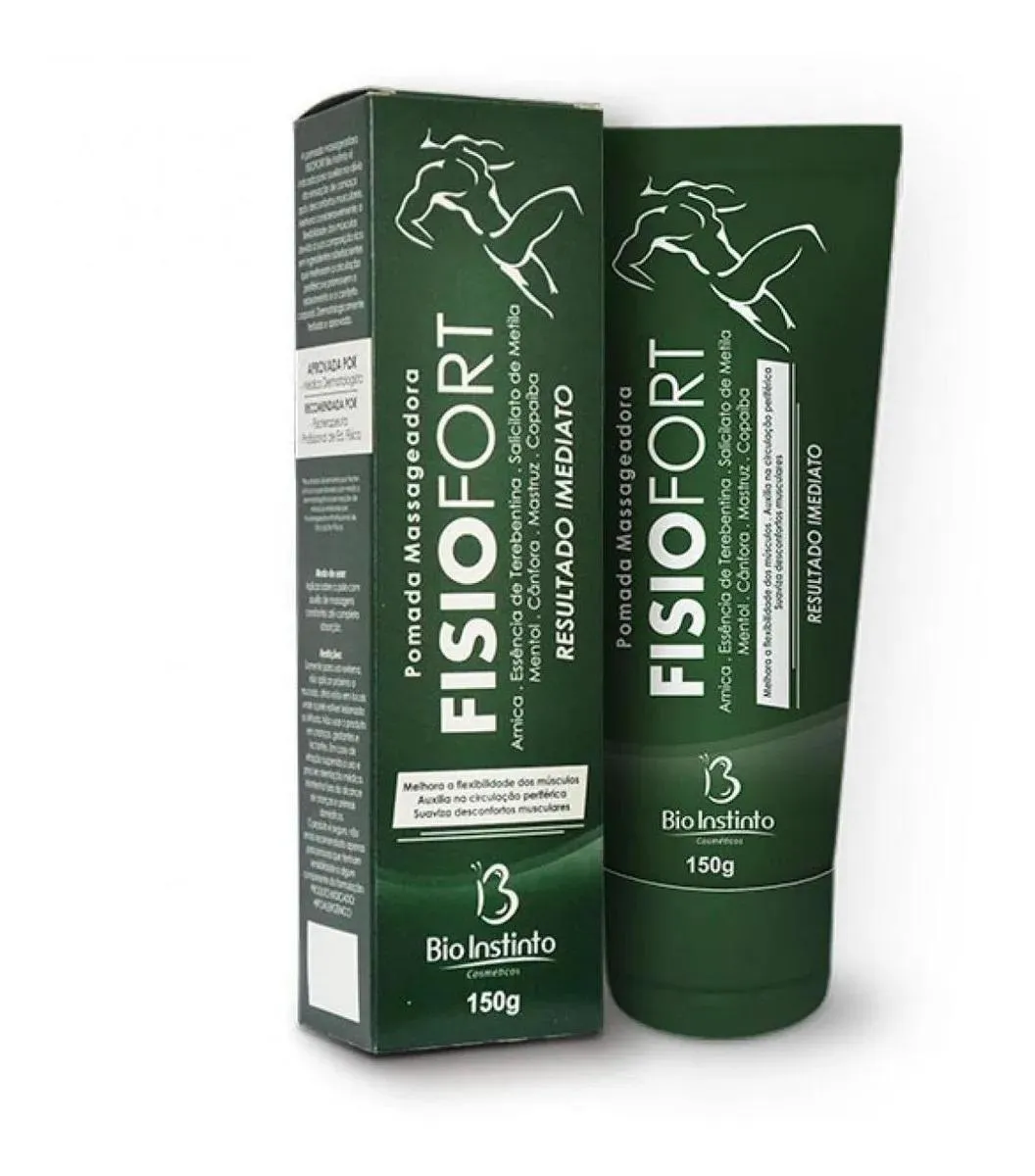 A Pomada Massageadora Fisiofort Bio Instinto possui fórmula nova, 0% Parabenos e 0% Petrolatum. É um produto cosmético elaborado com extratos vegetais típicos da flora brasileira. Sua função é promover relaxamento corporal e auxiliar no alívio da sensação de cansaço corporal após exercícios físicos, má postura ou esforço exagerado.