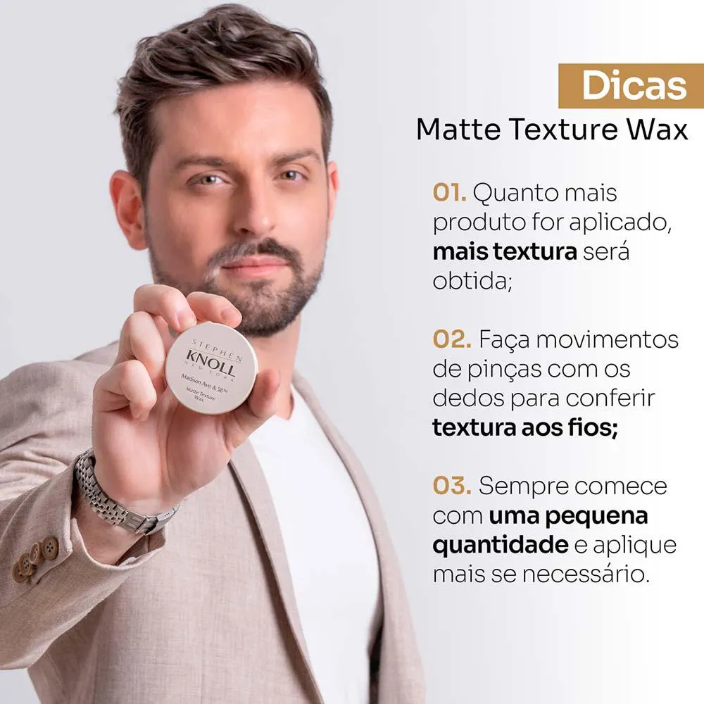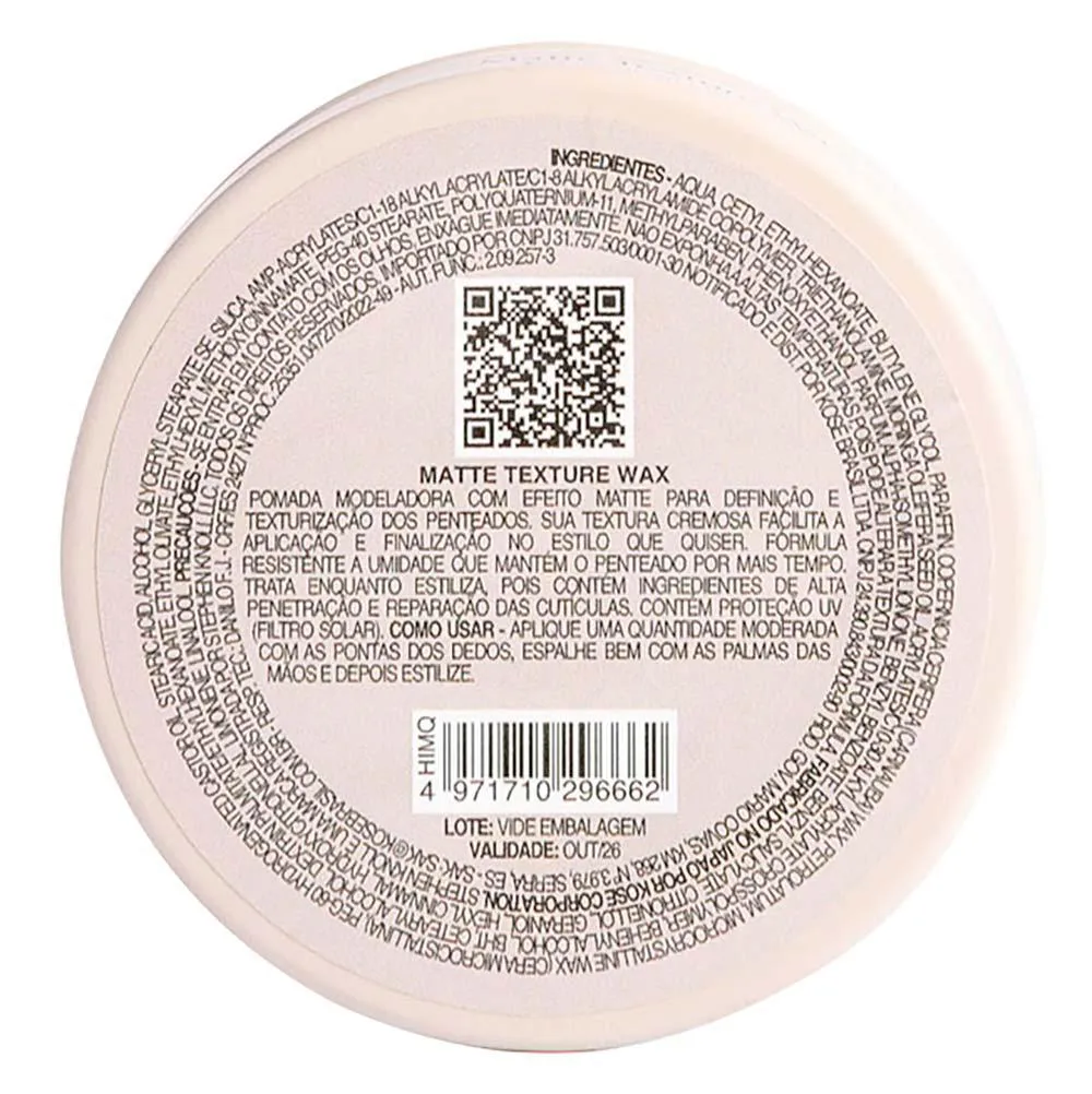 Formulada com tecnologia japonesa nos laboratórios Kosé, a Matte Texture Wax é uma pomada modeladora com efeito semi matte, que trata os fios enquanto estiliza.