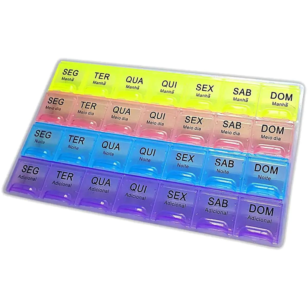 Porta comprimidos 4x7 Semanal Colorido com Separação de Períodos