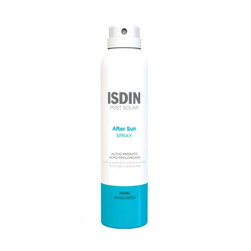 O Pós-Sol Corporal Isdin After Sun Spray se destaca por sua fórmula com Pantenol, que oferece hidratação intensa e reparadora para a pele após a exposição solar. Além de acalmar e refrescar imediatamente, o produto é rapidamente absorvido, o que evita a sensação pegajosa comum em outros pós-sol. Ele também ajuda a prolongar o bronzeado e prevenir a descamação, tornando-se uma escolha completa para manter a pele saudável e confortável após um dia de sol. Seu formato em spray facilita a aplicação uniforme e rápida, sendo prático para qualquer tipo de pele.