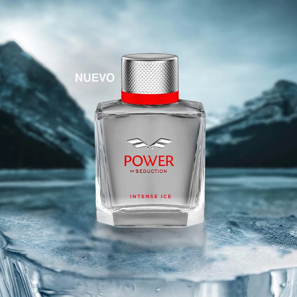 A nova fragrância de Antonio Banderas, Power Of Seduction Intense Ice Eau de Toilette, apresenta seu lado congelante, aventureiro e sedutor. O Frasco Projetado para ganhar, Power of Seduction Intense Ice trás a elegância de um frasco transparente com detalhes em alto relevo e uma linda tampa inspirada em pneu de um carro de luxo. Pura adrenalina em um design esportivo e juvenil.
