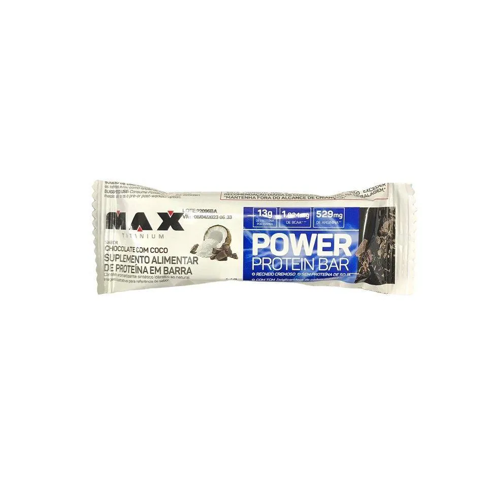 Power Protein Bar (90g) - Max Titanium Você está preparado para uma barra com um recheio muito cremoso e sabor maravilhoso, sem abrir mão da dieta? A barra POWER PROTEIN BAR, além de nutritiva, foi formulada para suplementar e trazer saciedade aos praticantes de exercício físico e ainda pode ser uma ótima alternativa de lanche para o dia-a-dia. Formulada com alto teor de proteínas (de 29 a 30g por barra, dependendo do sabor) de elevada qualidade, conta ainda com aporte de carboidratos de baixo índice glicêmico e fibras, sendo uma excelente opção para períodos de treinos mais intensos. Possui também adição de TCM (triglicerídeos de cadeia média), gordura de rápida absorção no organismo, que constitui uma rápida fonte de energia. Nós sabemos que um sabor maravilhoso e um valor nutritivo incrível podem coexistir. A Max Titanium é apaixonada em criar suplementos deliciosos!Benefícios:* Rico em proteína;* Sem açúcar;* Baixo índice glicêmico;* Acréscimo de fibras;* Favorece a síntese proteica;* Prática e deliciosa;* Fonte de energia rápida;* Aproximadamente, 29g de proteína por unidade;* Acréscimo de TCM (triglicerídeos de cadeia média);* Ideal para refeições intermediárias;* Recheio cremoso;