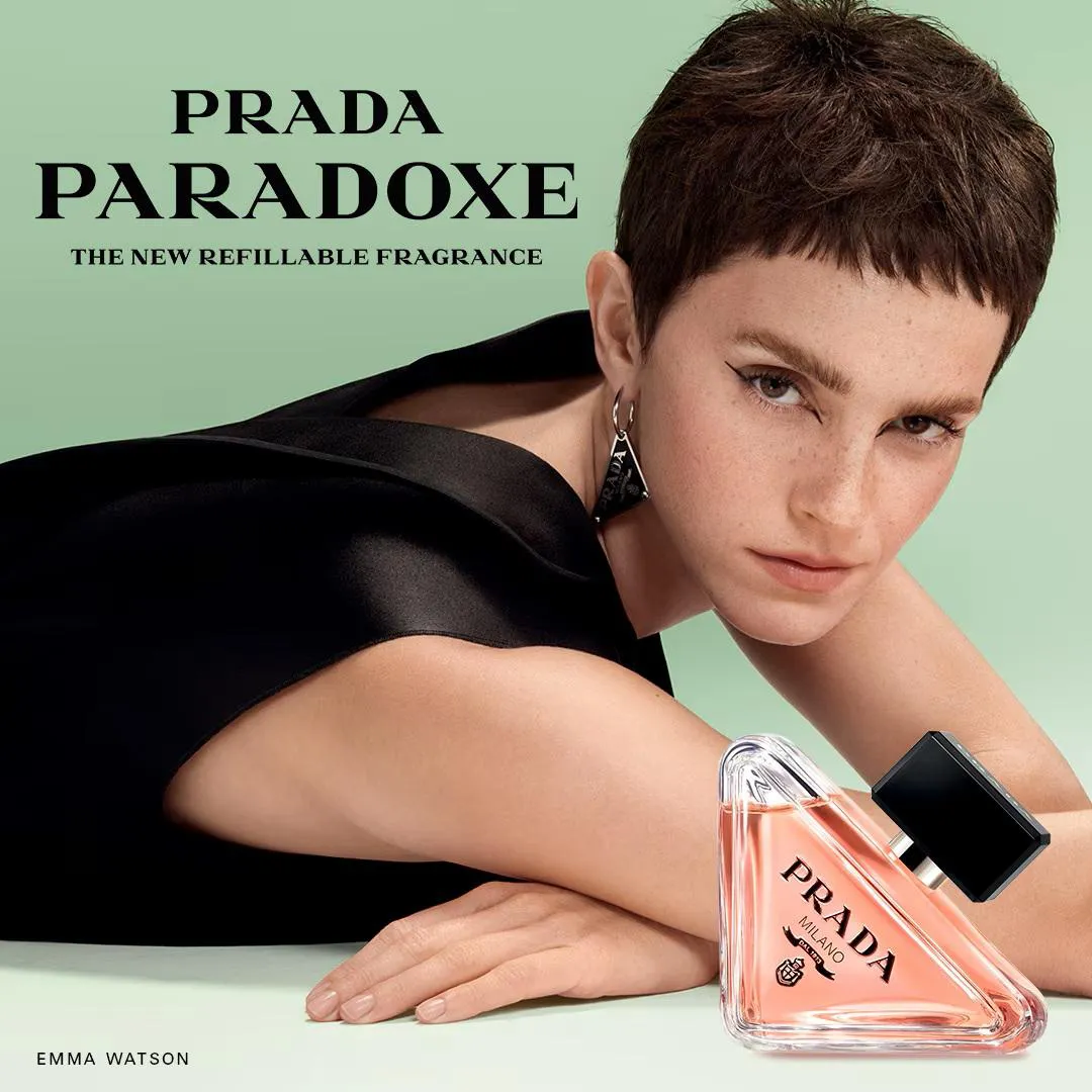 PRADA Paradoxe é uma nova fragrância que convida a explorar e expressar as múltiplas dimensões paradoxais das mulheres. Desenvolvida em colaboração com os mestres perfumistas Nadège Le Garlantezec, Shyamala Maisondieu e Antoine Maisondieu, juntamente com Miuccia Prada e Raf Simons, a fragrância busca conciliar atemporalidade com vanguarda e natureza com inovação. O frasco recarregável reinventa o icônico logotipo triangular da Prada, apresentando um design elegante e moderno.