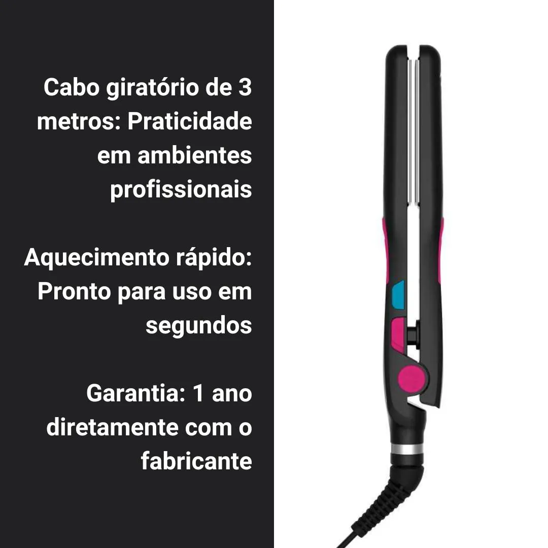 "Minha prancha antiga não chegava perto! O alisamento é perfeito e o rosa é lindo." - Camila, São Paulo