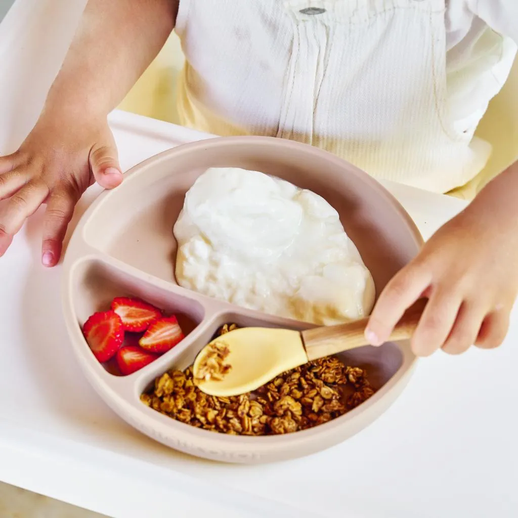 Prato Infantil de Silicone com Divisórias e Sucção Portions Bublle Beige - Minikoioi