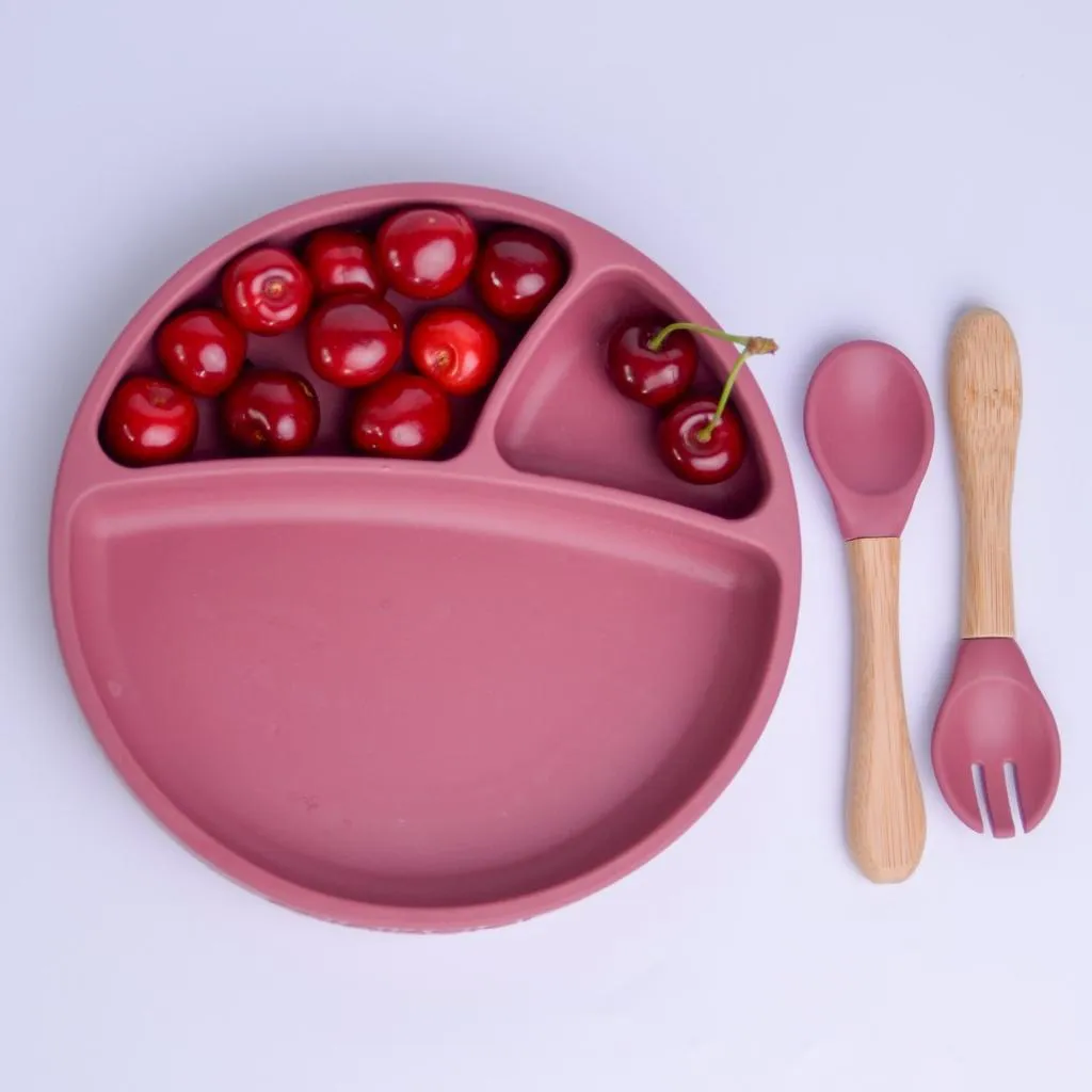 Prato Infantil de Silicone com Divisórias e Sucção Portions Velvet Rose - Minikoioi