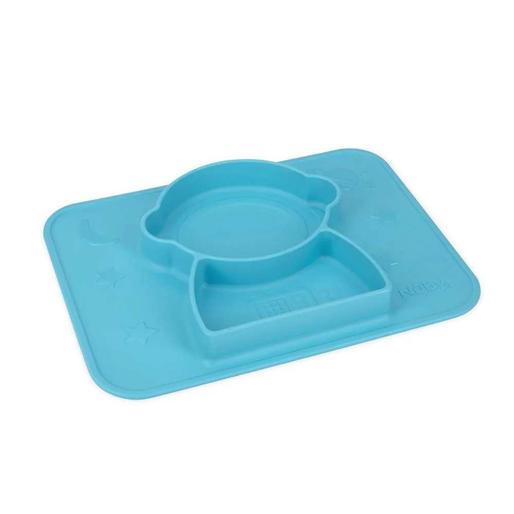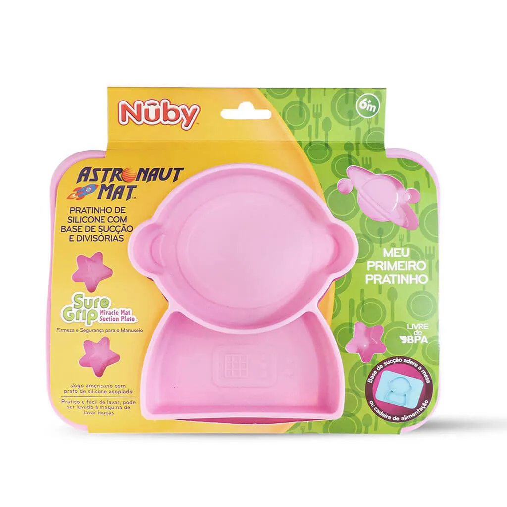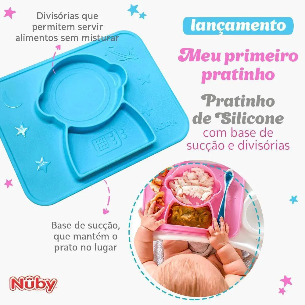 Pratinho de Silicone com Base de Sucção e Divisórias - Nûby O Pratinho de Silicone com Base de Sucção da Nûby permite que os pequenos desfrutem dos alimentos e ensina através do convívio, o hábito de alimentação tradicional, de maneira lúdica, prática e segura. O prato é acoplado com Jogo Americano e adere 100% na superfície, mantendo o prato no lugar. Benefícios e Diferenciais Fixa-se Facilmente em Superfícies Planas; A Sucção Evita que a Criança Derrube ou Desloque o Prato com o Alimento; Com 2 Divisórias que Permitem Servir Alimentos Diferentes, Sem Misturar; Prático e Fácil de Lavar; Pode Ser Levado à Maquina de Lavar Louças. Características Idade Recomendada: +6m; Composição: 100% Silicone; Dimensões Aproximadas: 18 x 25 x 3 cm; Livre de BPA; Limpeza: Lave com Água Morna e Sabão Neutro ou na Parte Superior da Lava-Louças Antes e Depois de Cada Uso e Deixe Secar Completamente; Intruções Para o Micro-Ondas: Coloque o Prato no Micro-ondas e Aqueça-o no Tempo e Nível de Potência Adequados; Imagens Meramente Ilustrativas!