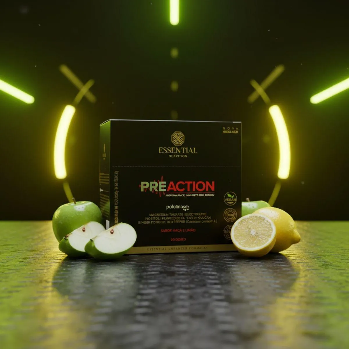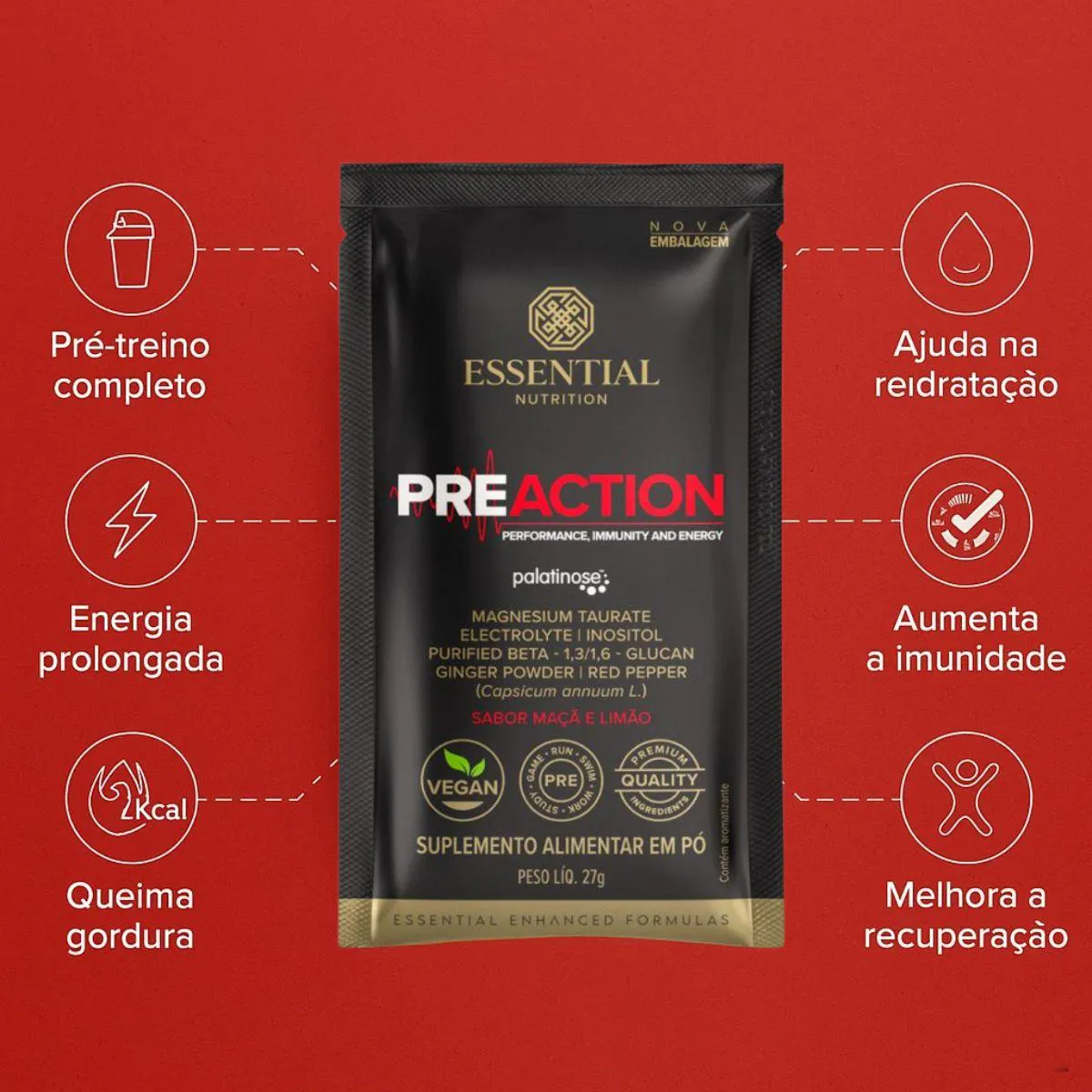 Pre-Action Energy Drink 27G (540G) 20 Unidades Essential Maçã