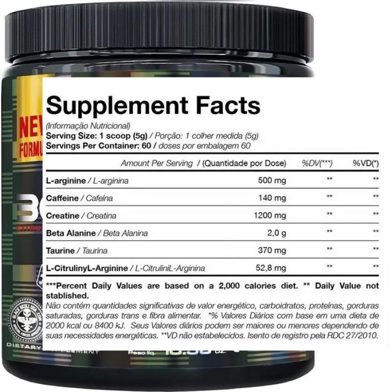 BONE CRUSHER™ é sinônimo de energia explosiva e desempenho máximo. O melhor pré-treino do mercado possui em sua formulação ativos como a creatina, beta-alanina, arginina, taurina, cafeína (e mais!). Esse é o produto mais premiado da BLACKSKULL USA™.
