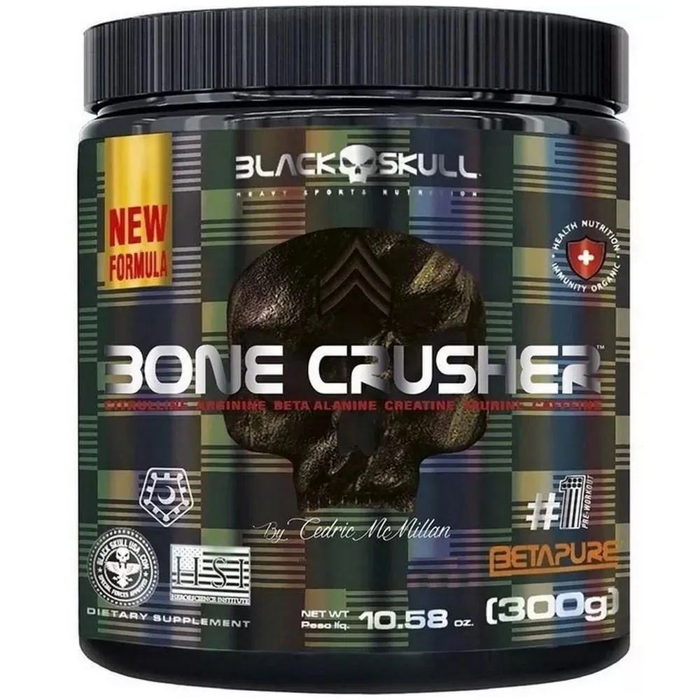 Bone Cruscher da Black Skull foi aprovado entre os maiores atletas do mundo e está entre os melhores pré treinos do mercado, foi desenvolvido com ingredientes únicos cuidadosamente formulados para aumentar e intensificar a qualidade nos treinos.