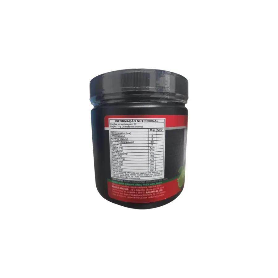 O Pote contém 300g de puro potencial, oferecendo 20 porções de 15g cada, garantindo que você tenha energia e disposição para suas atividades. O sabor Limão proporciona uma experiência refrescante, tornando seu pré-treino não apenas um aliado, mas também agradável ao paladar.
