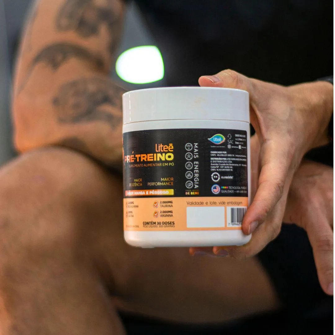 Pré-Treino Sabor Manga e Pêssego 300G - Beta Alanina, Arginina, Cafeína e Taurina - Litee