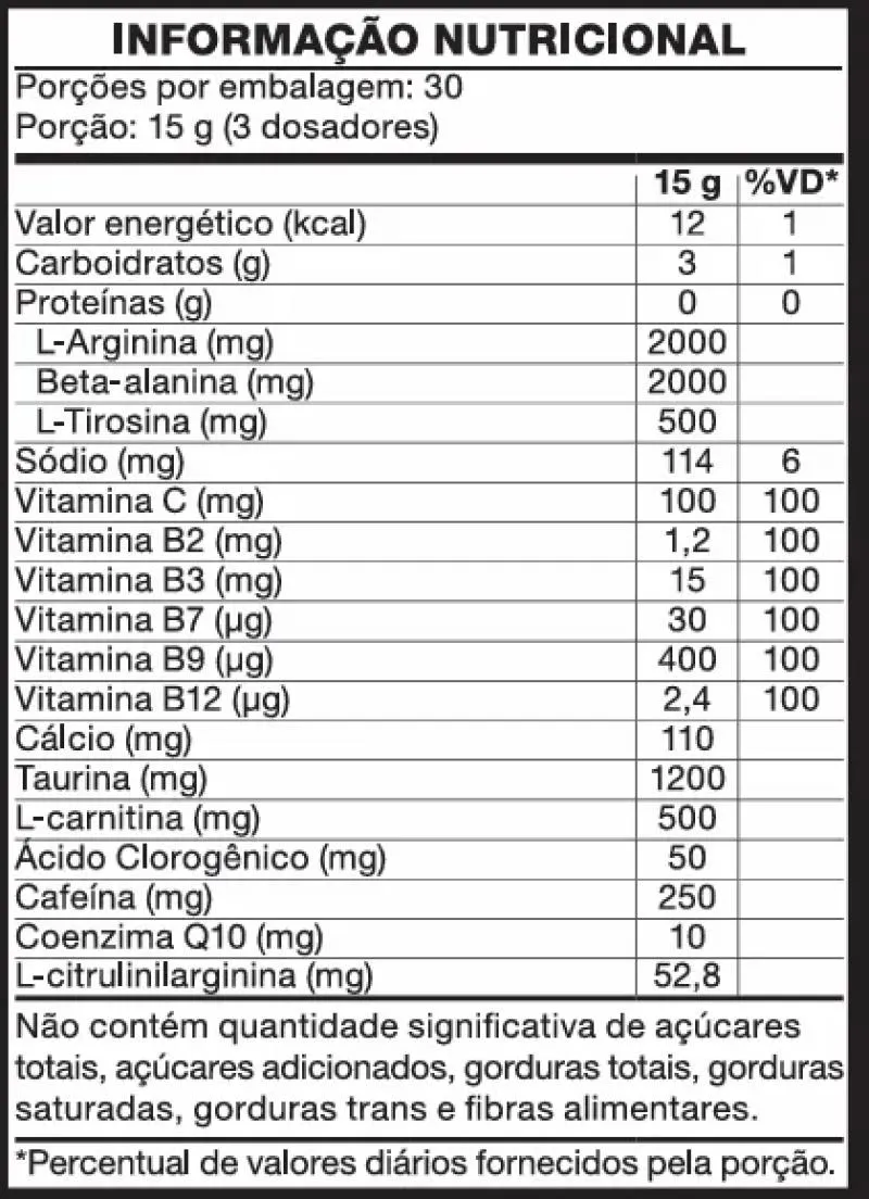 - Auxilia no aumento de energia, foco e resistência durante os treinos.