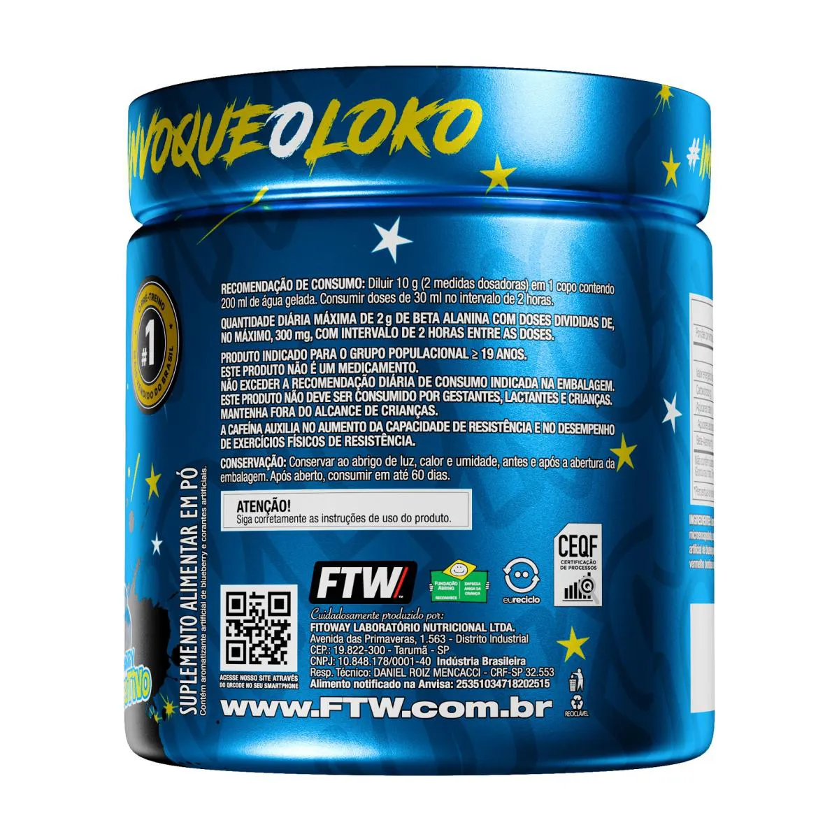 Diabo Verde #Pre-Workout Dip Loko! 300gO que é / Para que serveQuando duas potências se unem, o resultado não é só energia. É explosão.A intensidade do Diabo Verde se juntou à irreverência do Dip Loko para criar uma collab inédita: Diabo Verde Pre-Workout Dip Loko!Um pré-treino com sabor marcante, experiência única e atitude em cada dose.Mais do que um lançamento, é um grito de quem treina com vontade, vive com intensidade e não tem medo de ser diferente.Exploda em energia. Invoque o Loko.IngredientesIsomaltulose, beta-alanina, L-arginina, L-taurina, L-tirosina, cafeína microencapsulada, antiumectante fosfato tricálcico, acidulante ácido cítrico, edulcorantes sucralose e acessulfame de potássio, aromatizante e corante (conforme o sabor).