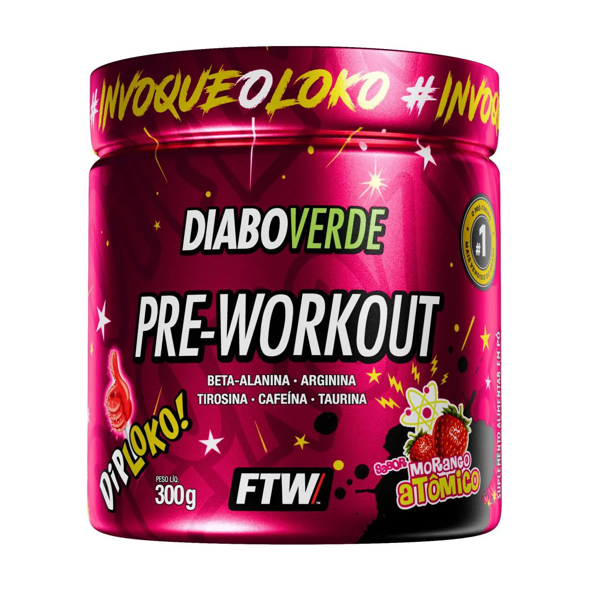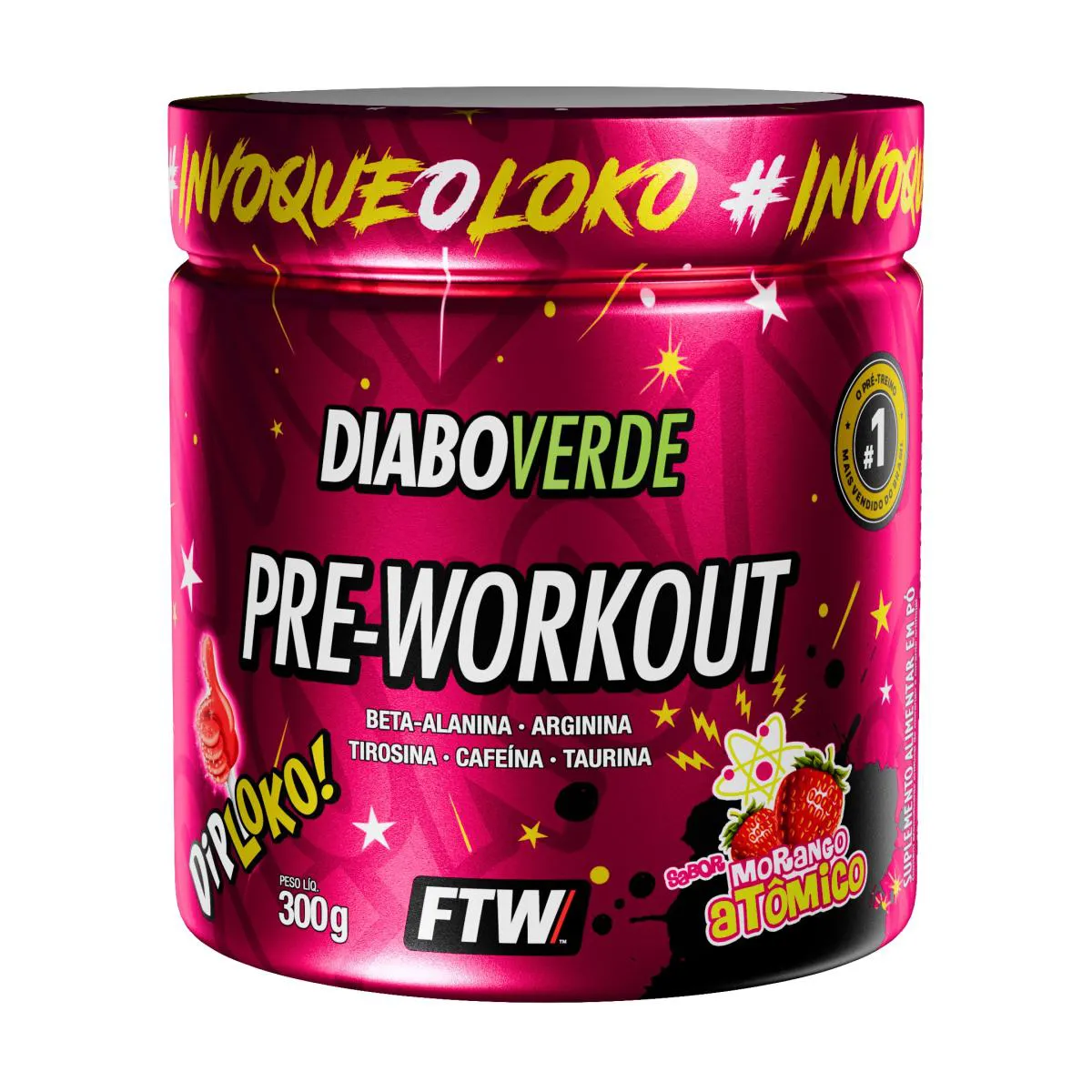 Pre Workout 300G Sabor Morango Atômico Diabo Verde - Ftw