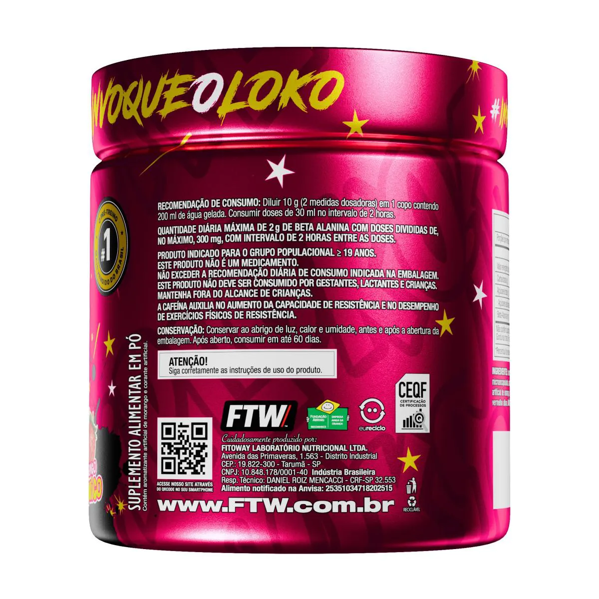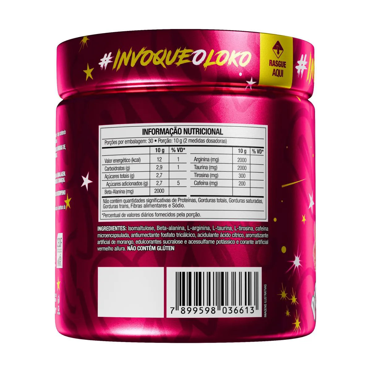 - Composição com ingredientes que auxiliam no desempenho físico como beta-alanina, L-arginina e cafeína.