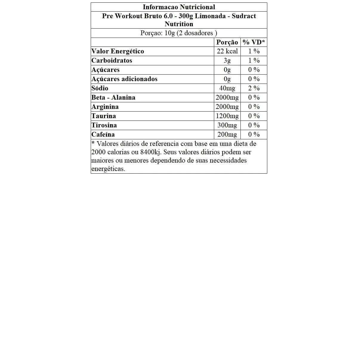 Pre Workout Bruto 6.0 - 300G Limonada - Sudract Nutrition
