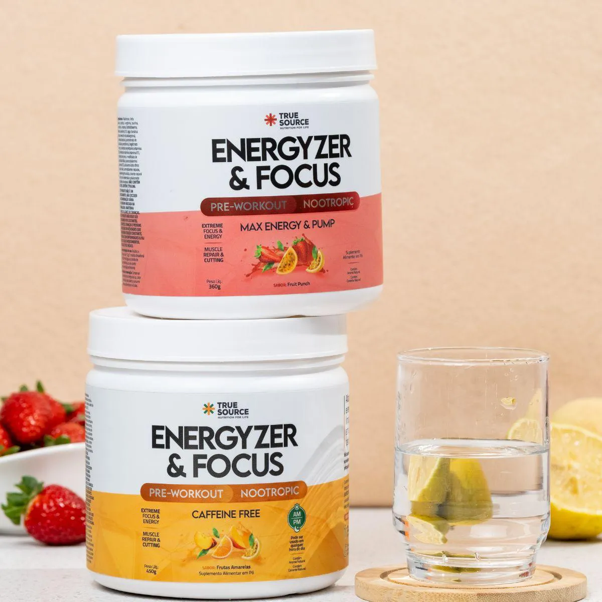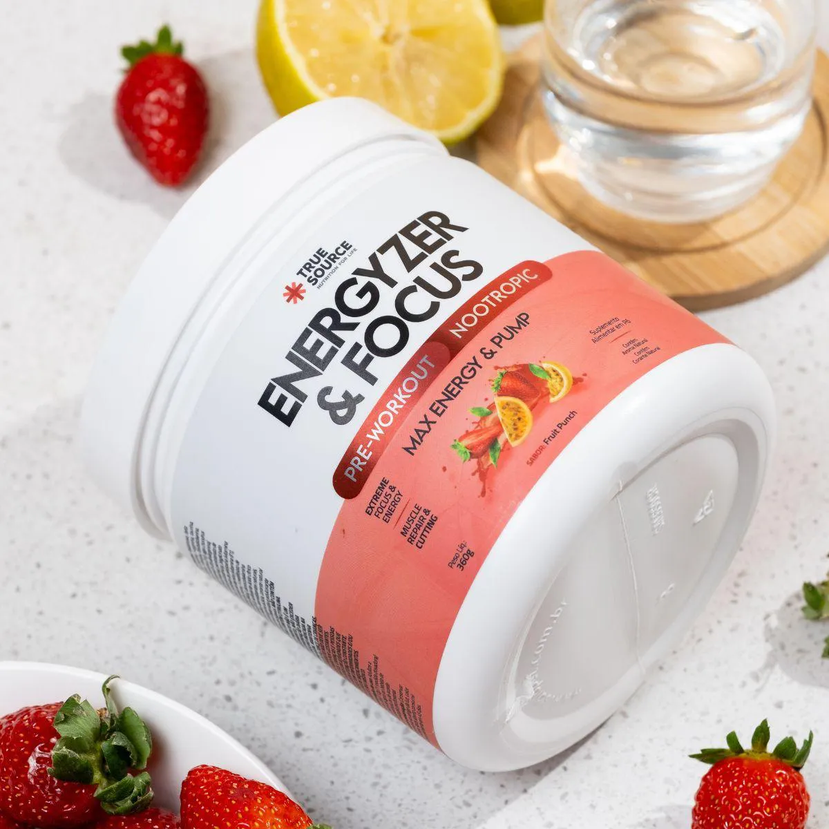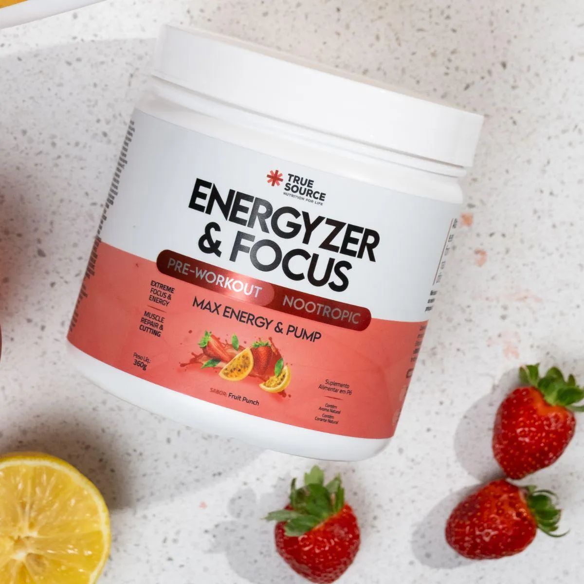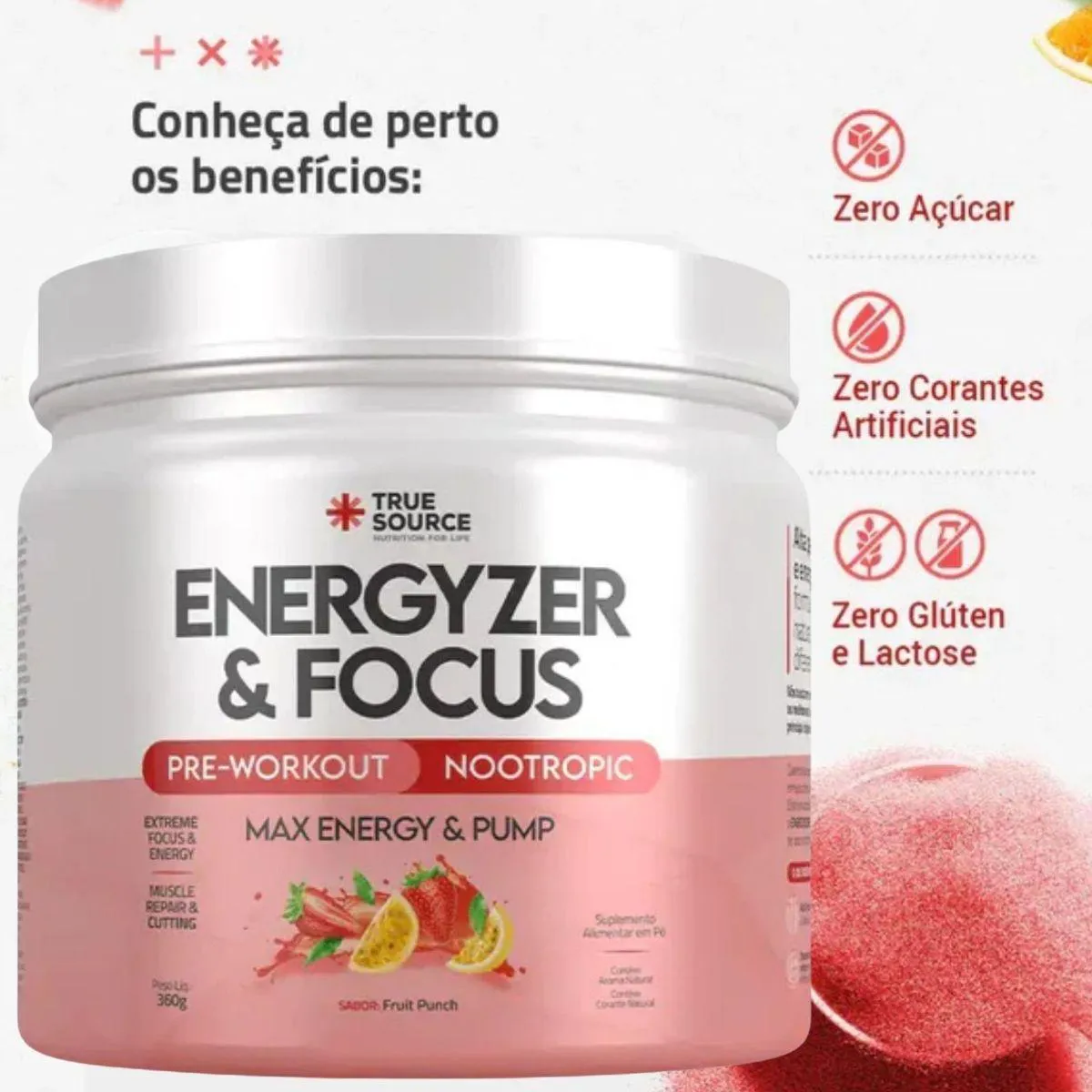 Os diferenciais do Pre Workout Energyzer e Focus Max Pump destacam o cuidado da marca com sabor, textura e experiência sensorial. A True Source é reconhecida por criar produtos com excelente solubilidade e perfis gustativos balanceados, oferecendo praticidade sem abrir mão de qualidade. A fórmula equilibrada do pré-treino reforça essa proposta, entregando um suplemento versátil, fácil de consumir e adequado a diferentes estilos de vida.