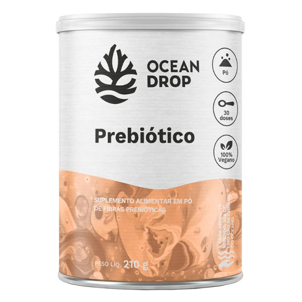 suplemento prebiótico pode ser em cápsulas ou em pó. O prebiótico da Ocean Drop é no formato em pó, possui sabor neutro e por isso pode ser facilmente adicionado a