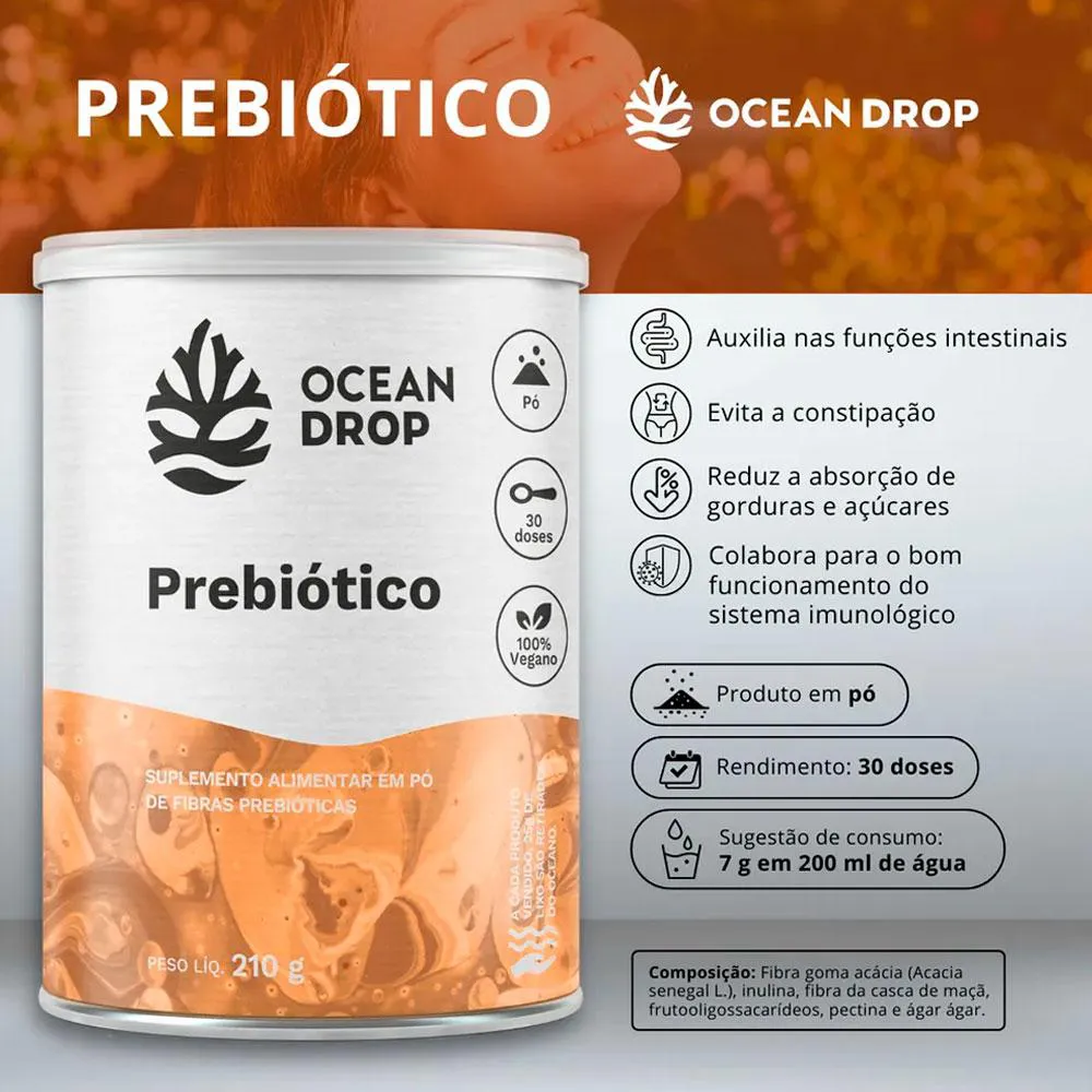 Prebiotico em Pó 100% Vegano (210G) - Ocean Drop