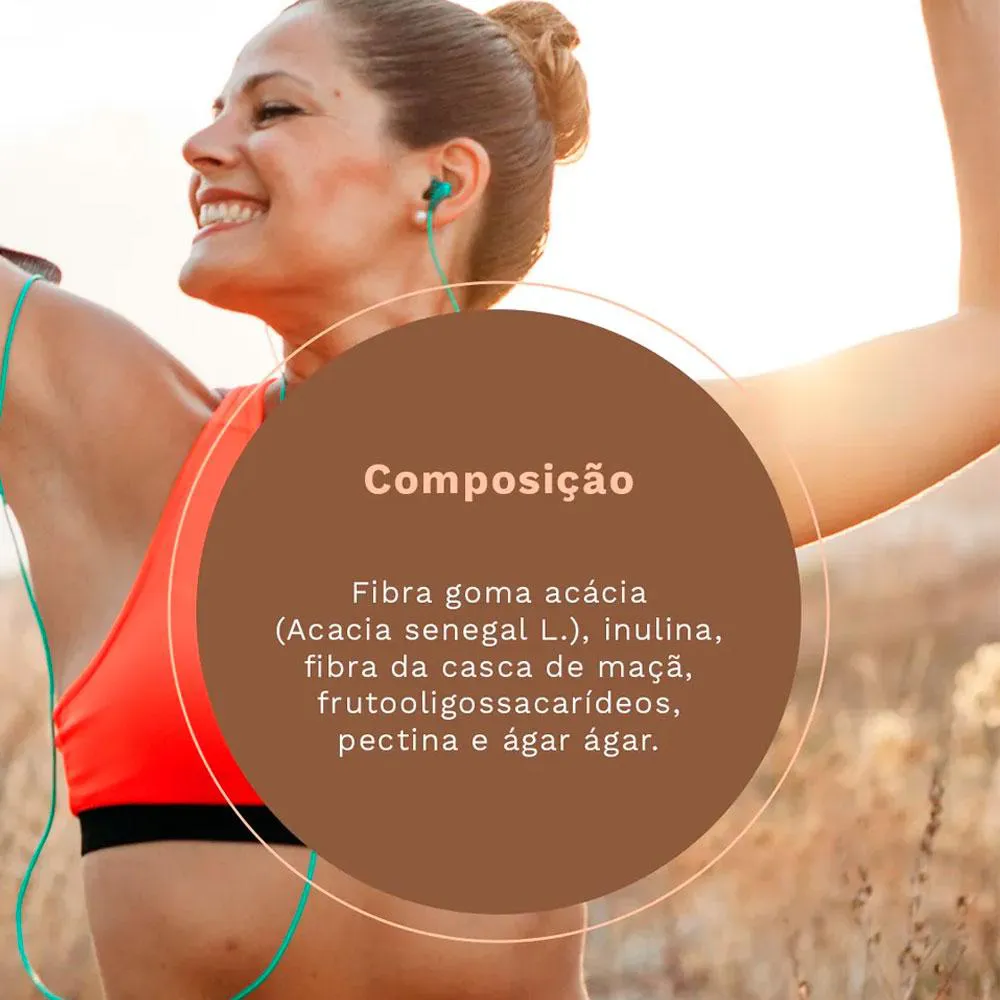 Ingredientes: Fibra goma acácia (Acacia senegal L.), inulina, fibra da casca de maçã, frutooligossacarídeos, pectina e ágar ágar. NÃO CONTÉM GLÚTEN