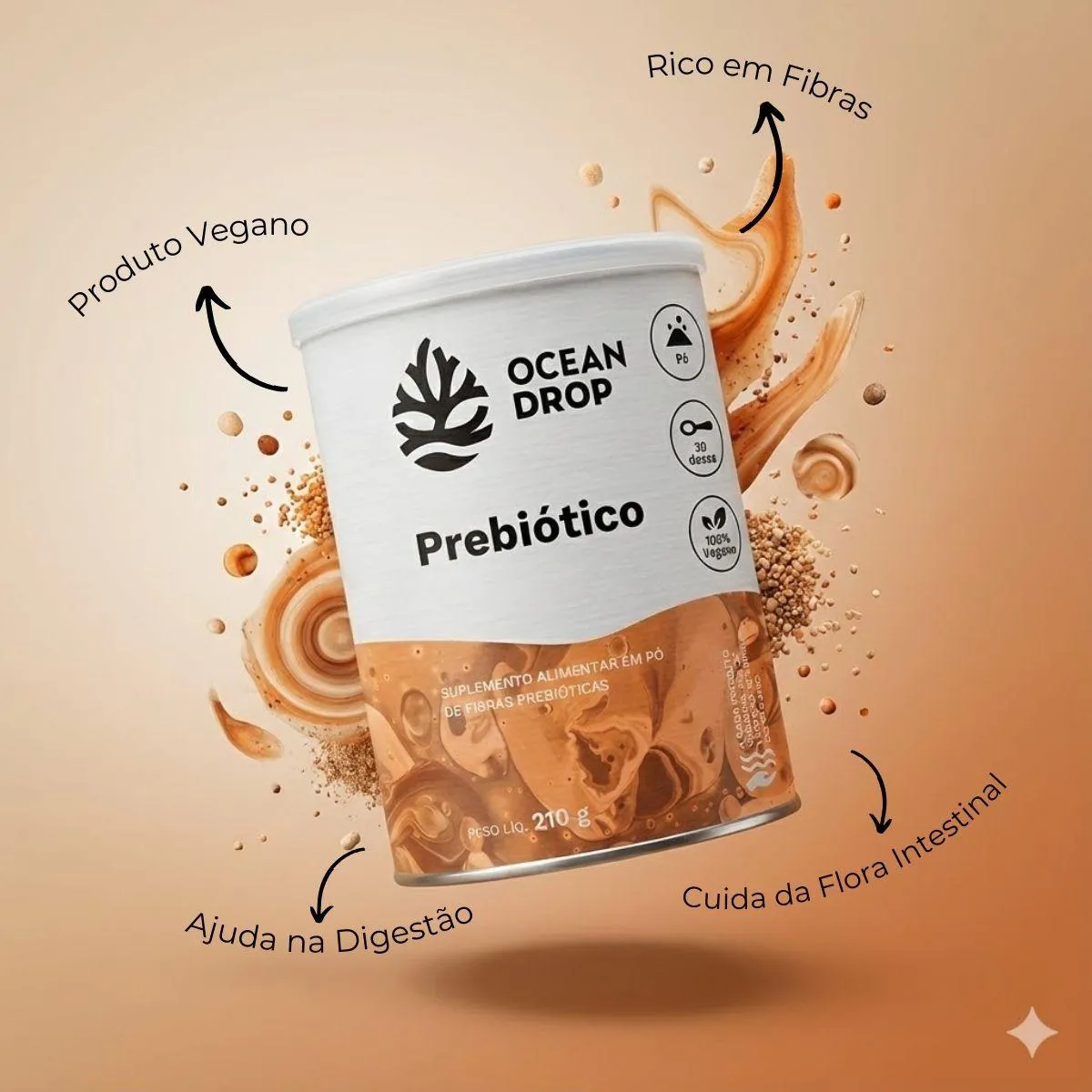 Prebiotico Vegano 210G Saude Digestiva Rico em Fibras Ocean Drop