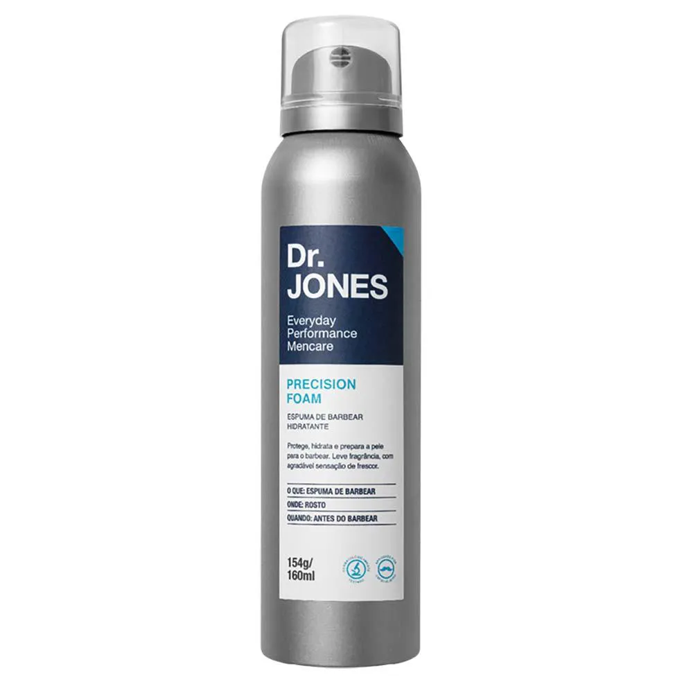 Precision Foam da marca Dr. Jones possui ativos biofuncionais com propriedades calmantes e suavizantes que previnem as irritações causadas pela lâmina para um barbear mais suave, rente e seguro. Pode ser usada para depilar outras partes do corpo.