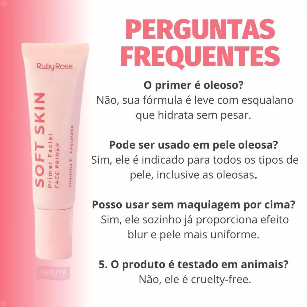 Marca: RUBY ROSE Produto: Primer Facial Ruby Rose Soft Skin HB-M1700 Código de Referência: HBM1700 Categoria: Pré Maquiagem Textura: Aveludada Compatibilidade: Todos os tipos de peleAnvisa:25351.329887/2024-41