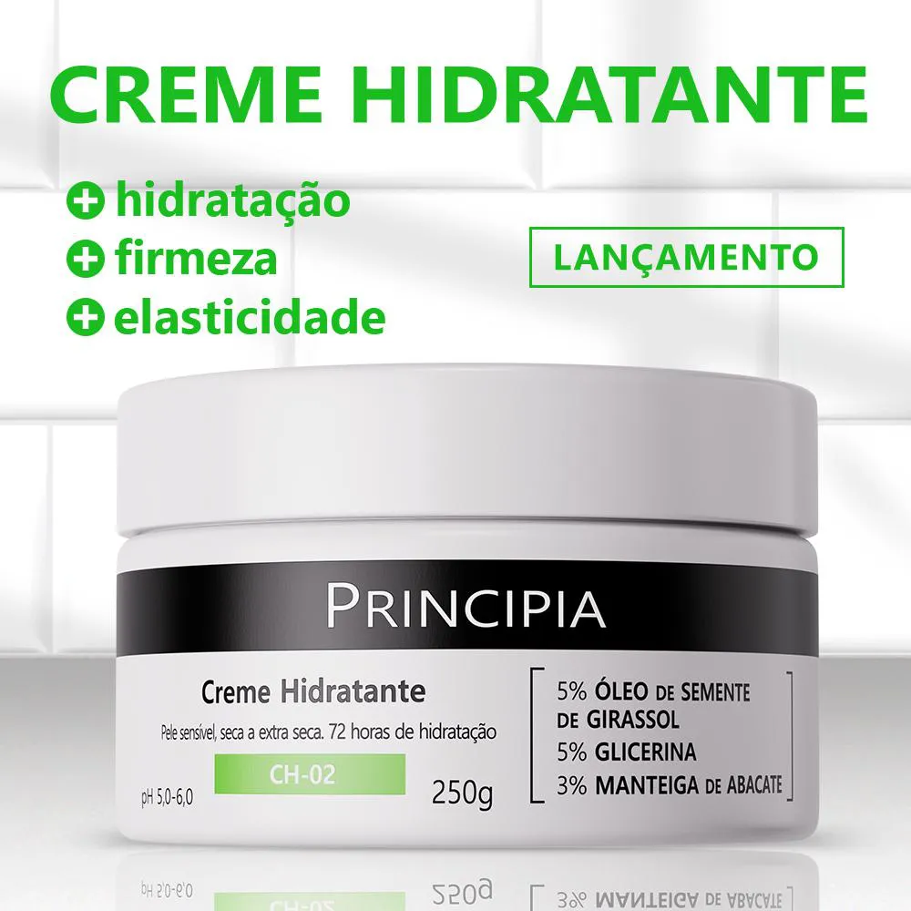 Principia, Creme Hidratante Corporal 5% Óleo de Semente de Girassol + 5% Glicerina + 3% Manteiga de Abacate Ch-02 com 250G