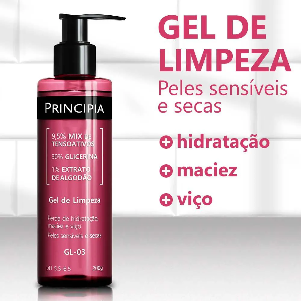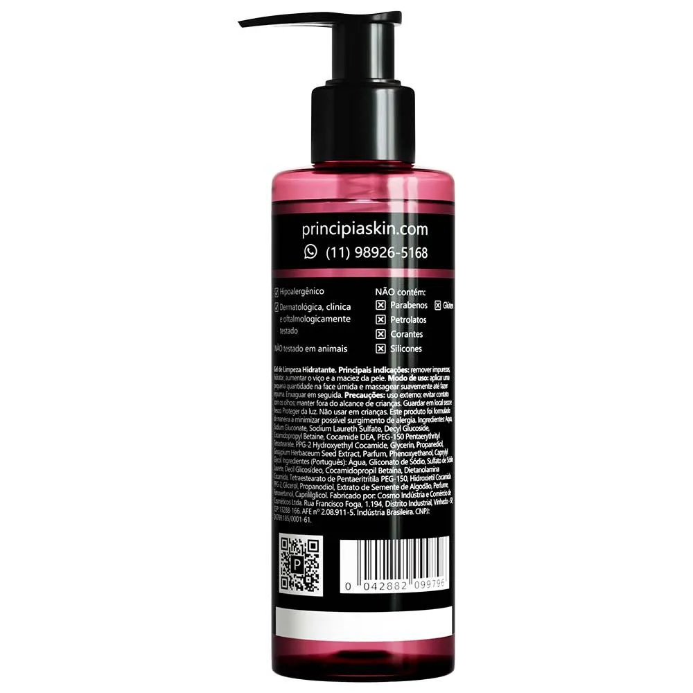 Principia, Gel de Limpeza Facial Hidratante 9,5% Tensoativos + 30% Glicerina + 1% Extrato de Algodão Gl-03 com 200G