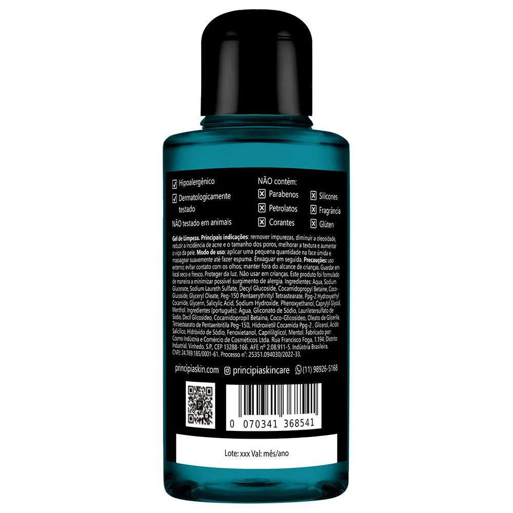 Contêm parabenos, petrolatos e sulfatos?Sua composição não contém parabenos, petrolatos, corantes, silicones, fragrância nem glúten. Contém sulfato apenas na formulação do GL-01. Estão regularizadas na Anvisa?Sim, conforme processos número 25351.094030-2022-33, 25351.043173-2021-04, 25351.511390-2020-41 e 25351.916196-2021-30. Causa descamação da pele?Em geral, não provoca descamação visível da pele. Foram testadas em animais?Não. A PRINCIPIA não realiza testes em animais. Qual o prazo de validade?Três anos, contados da data de fabricação. Causa acnes ou cravos?Não. Pelo contrário, costumam ter efeitos benéficos e ser recomendada para peles acnêicas.