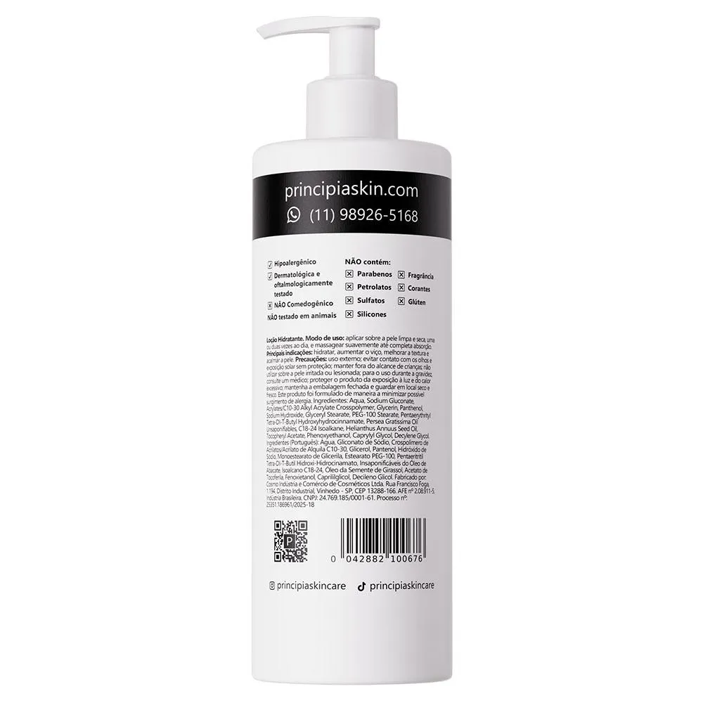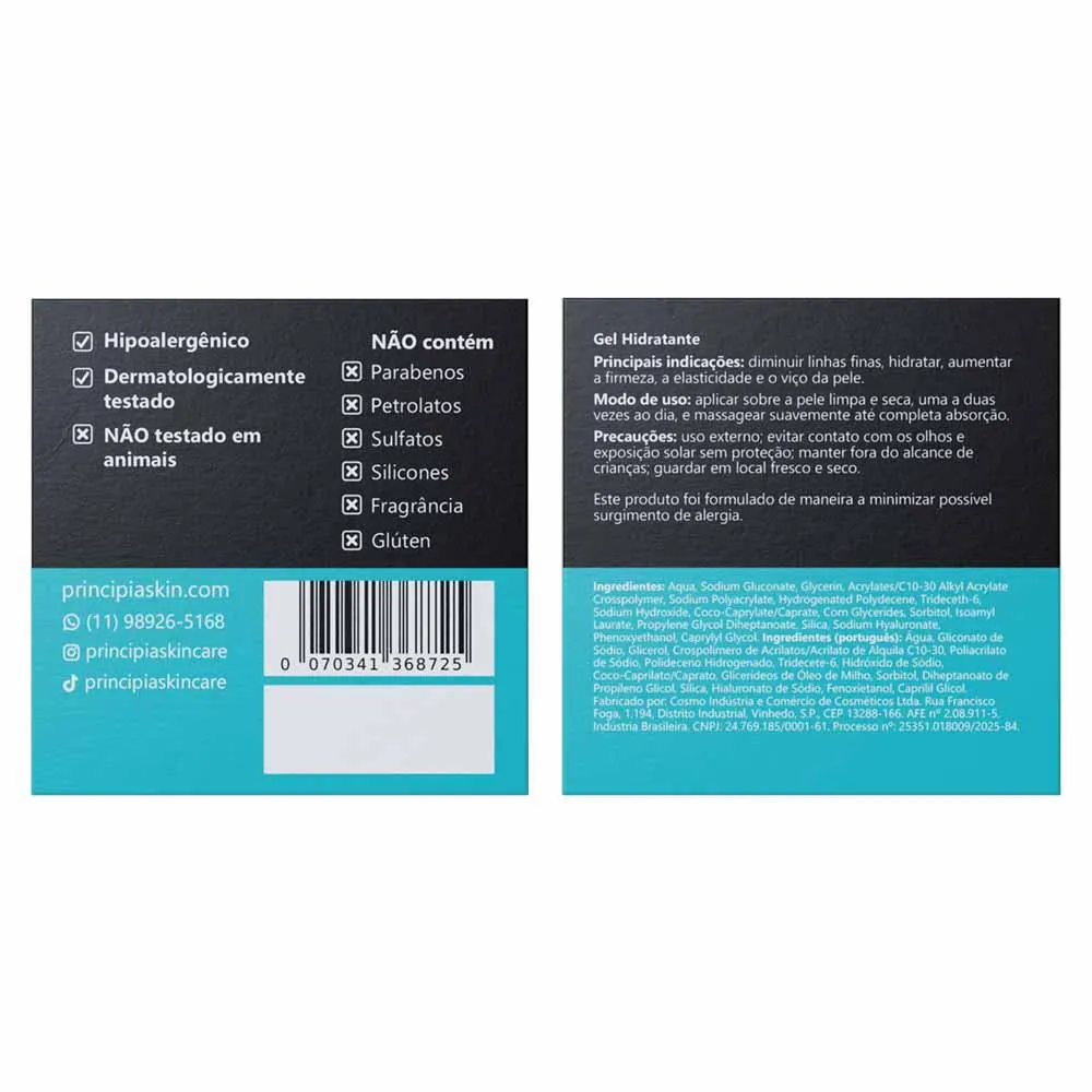Contêm parabenos, petrolatos e sulfatos?Não. Suas composições também não incluem silicones, fragrância nem glúten. Estão regularizadas na Anvisa?Sim, conforme os processos números 25351.186961/2025-18 e 25351.018009/2025-84. Causa descamação da pele?Em geral, não provoca descamação visível da pele. Foram testadas em animais?Não. A PRINCIPIA não realiza testes em animais. Qual o prazo de validade?Três anos, contados da data de fabricação. Causa acnes ou cravos?Não. Pelo contrário, costumam ter efeitos benéficos e ser recomandadas para peles acnêicas.