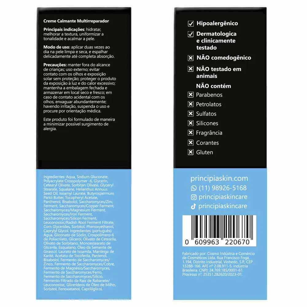 Contêm parabenos, petrolatos e sulfatos?Não. Suas composições também não incluem silicones, fragrância nem glúten. Estão regularizadas na Anvisa?Sim, todos os produtos são devidamente regularizados junto a Anvisa. Causa descamação da pele?Em geral, não provoca descamação visível da pele. Foram testadas em animais?Não. A PRINCIPIA não realiza testes em animais. Qual o prazo de validade?Três anos, contados da data de fabricação. Causa acnes ou cravos?Não. Pelo contrário, costumam ter efeitos benéficos e ser recomendadas para peles acnêicas.