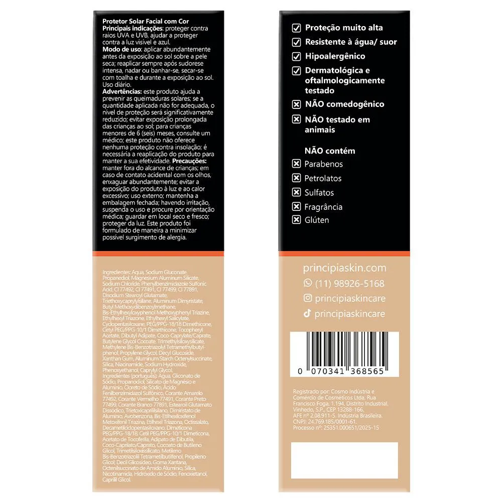 Contêm parabenos, petrolatos e sulfatos?Não. Suas composições também não incluem silicones, fragrância nem glúten. Contém sulfato no gel de limpeza. Estão regularizadas na Anvisa?Sim, todos os produtos são devidamente regularizados junto a Anvisa. Causa descamação da pele?Em geral, não provoca descamação visível da pele. Foram testadas em animais?Não. A PRINCIPIA não realiza testes em animais. Qual o prazo de validade?Três anos, contados da data de fabricação. Causa acnes ou cravos?Não. Pelo contrário, costumam ter efeitos benéficos e ser recomendadas para peles acnêicas.