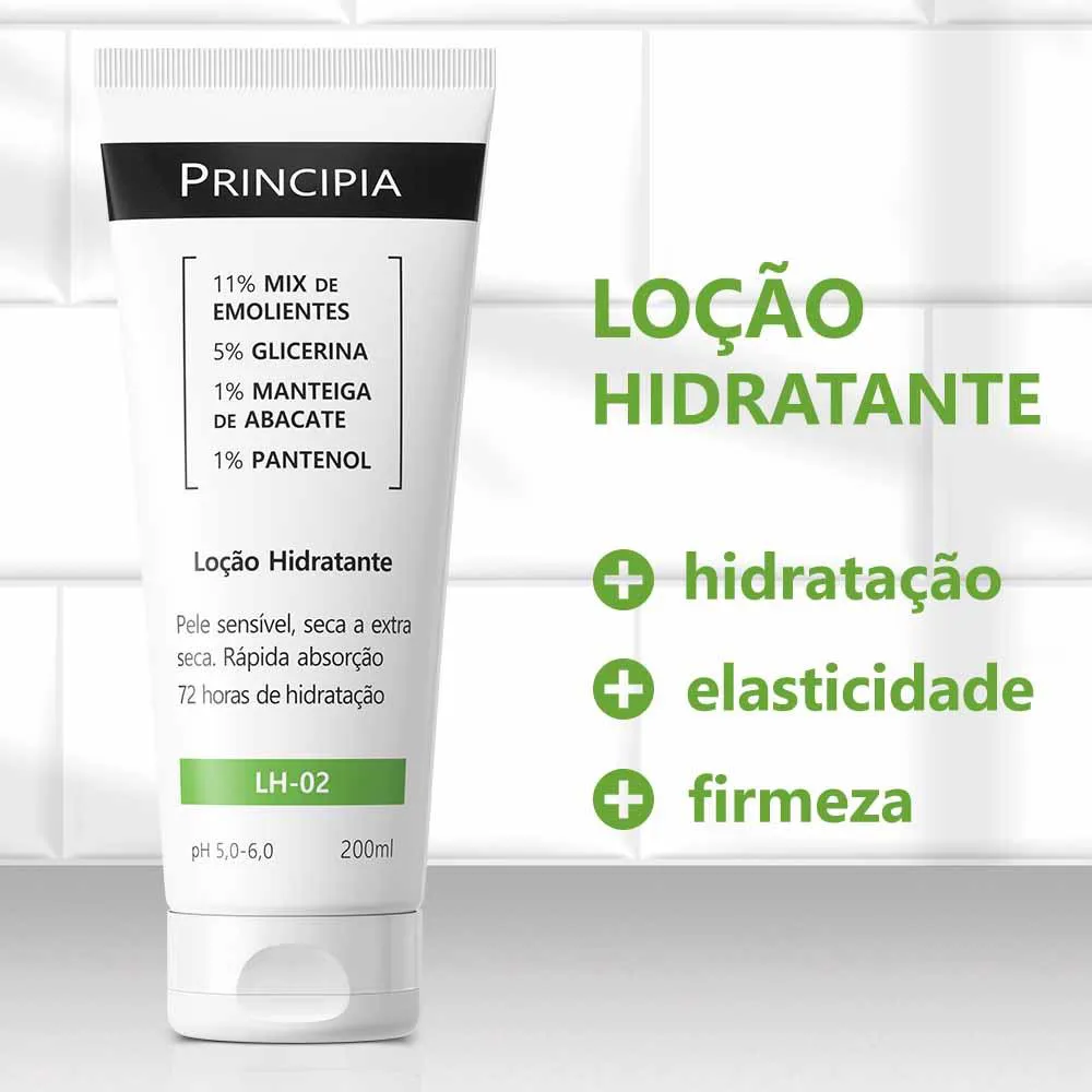 Principia, Loção Hidratante Corporal 11% Mix de Emolientes + 5% Glicerina + 1% Manteiga de Abacate + 1% Pantenol Skincare Lh-02 com 200Ml